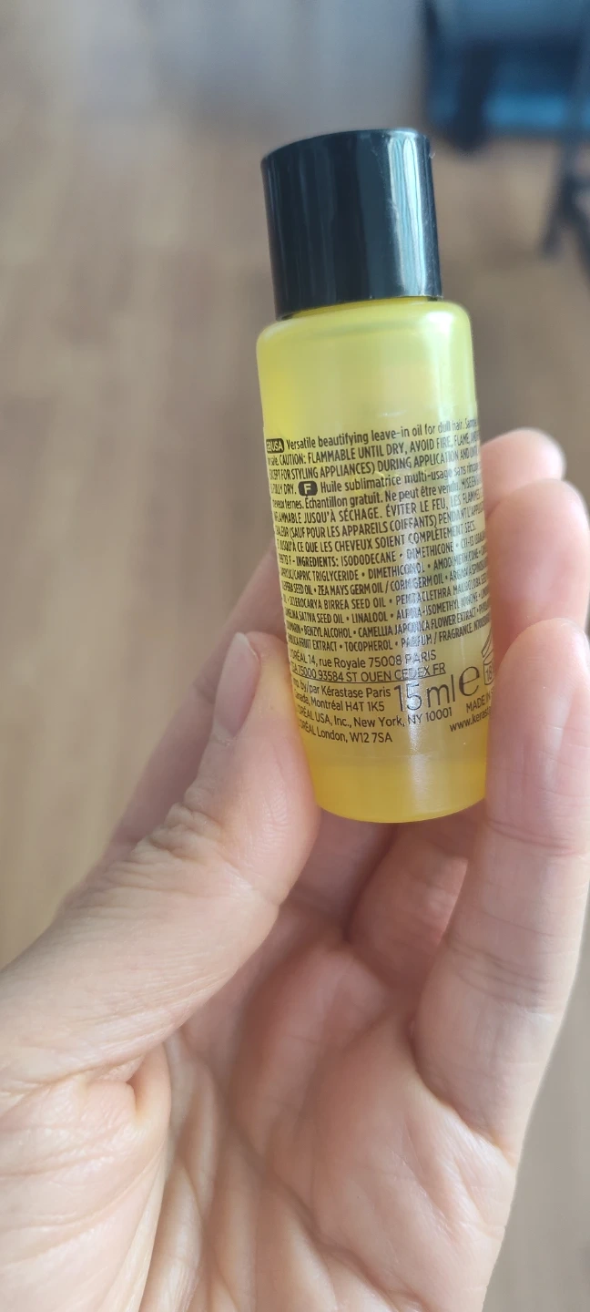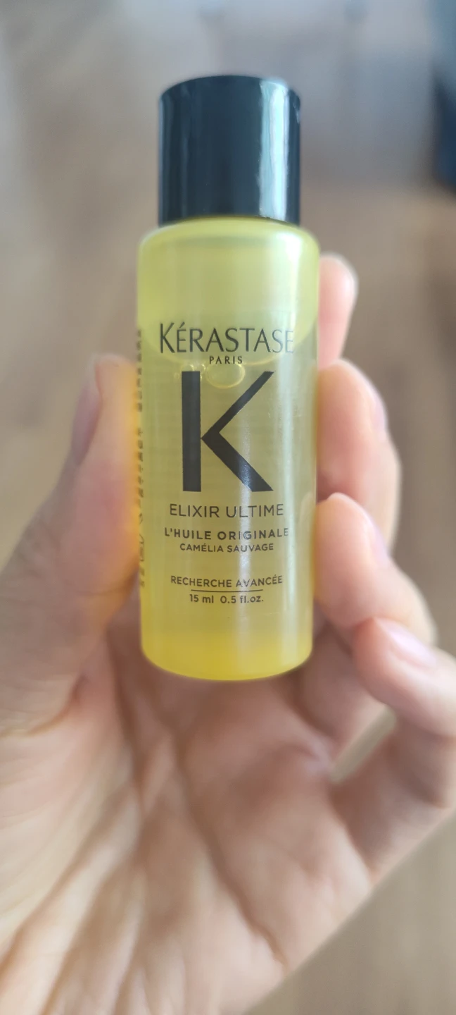 Selling a Kérastase Elixir Ultime L'Huile Originale in a handy 15ml size! It's a versatile beautifying leave-in oil for dull hair. Perfect for trying out this iconic product or for travel.