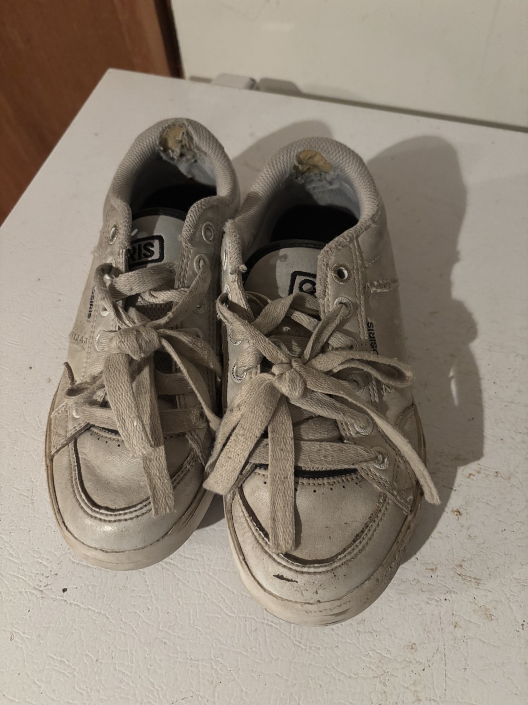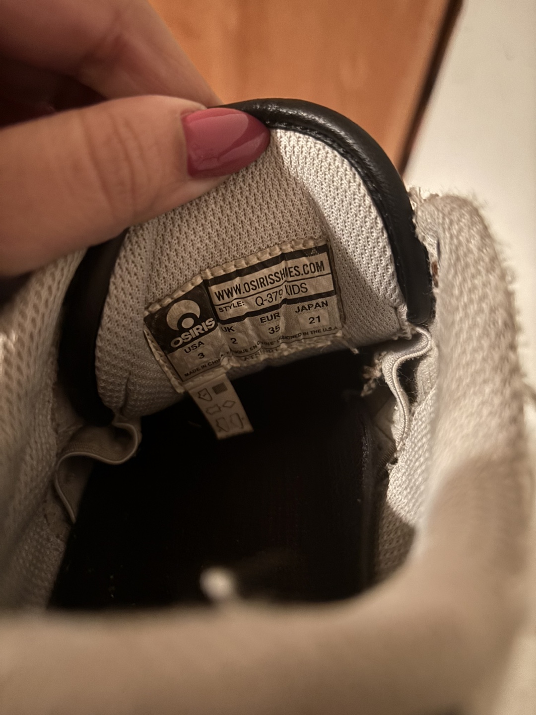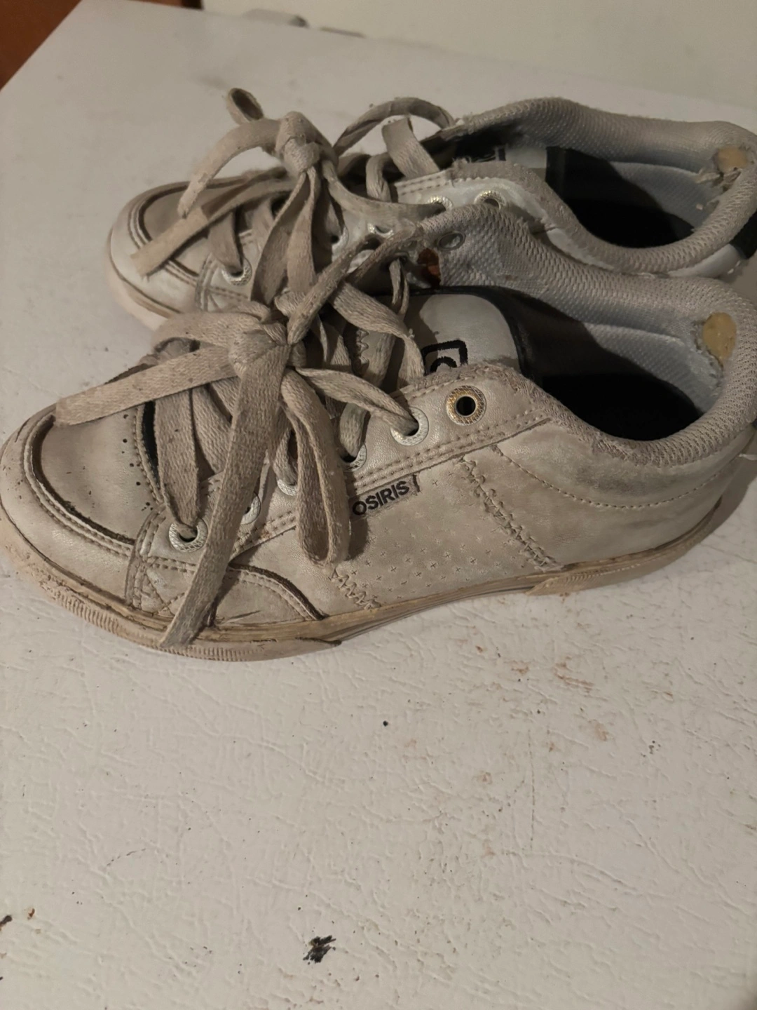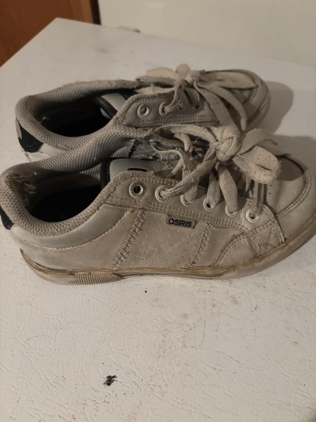 Selling a pair of Osiris kids' shoes. They show signs of wear and tear, as you can see in the pictures. Still lots of life left in them!
