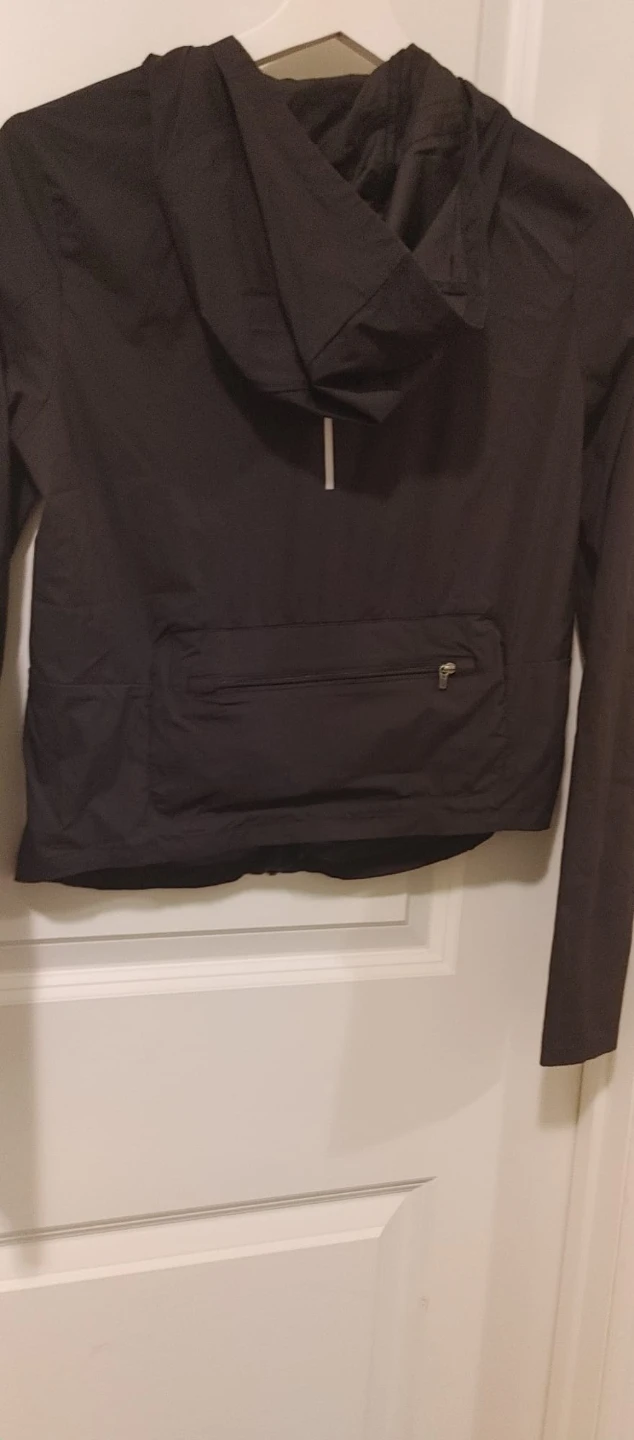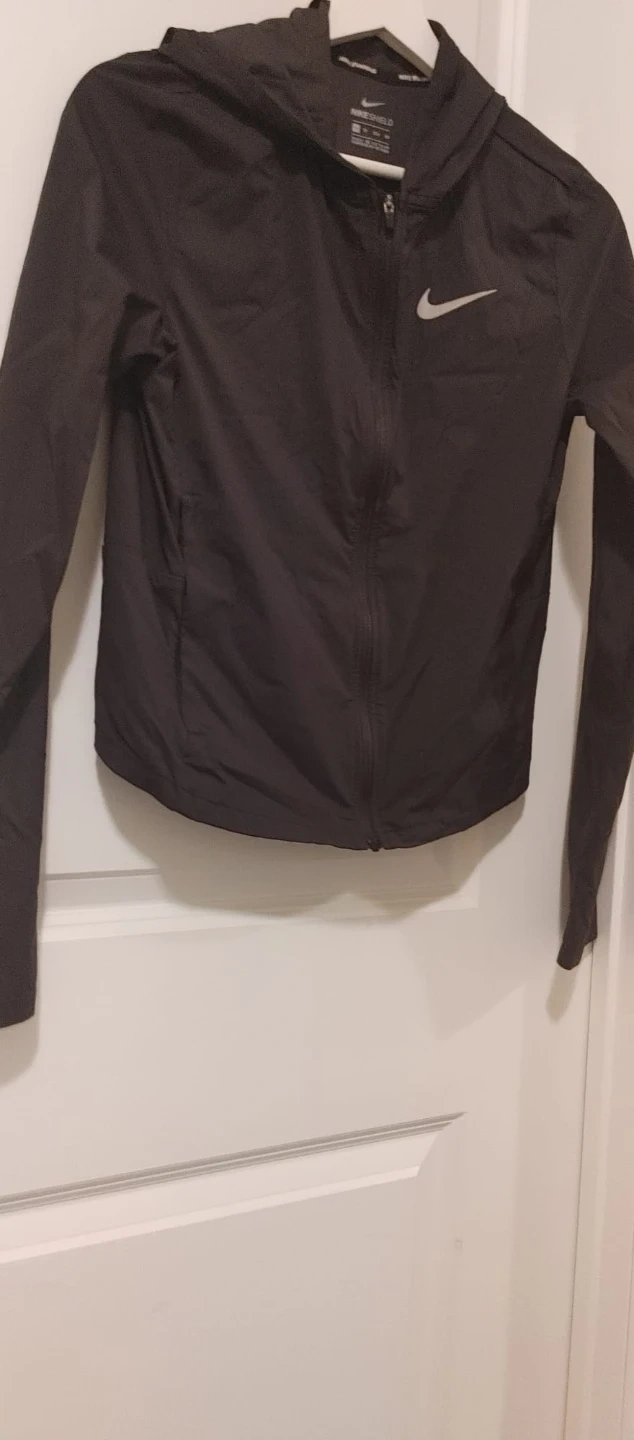 Nike Shield running jacket in size XS. It's a great lightweight jacket for running or other outdoor activities. Has a hood and a zippered back pocket!