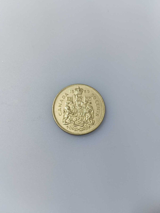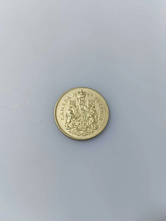 Here's a 1969 Canadian fifty cent coin. It's a neat piece of Canadian history for collectors or anyone interested in vintage currency. This coin has been around the block, showing its age with some wear and character. A unique addition to any collection! If you're reading this, yes, it's still available!