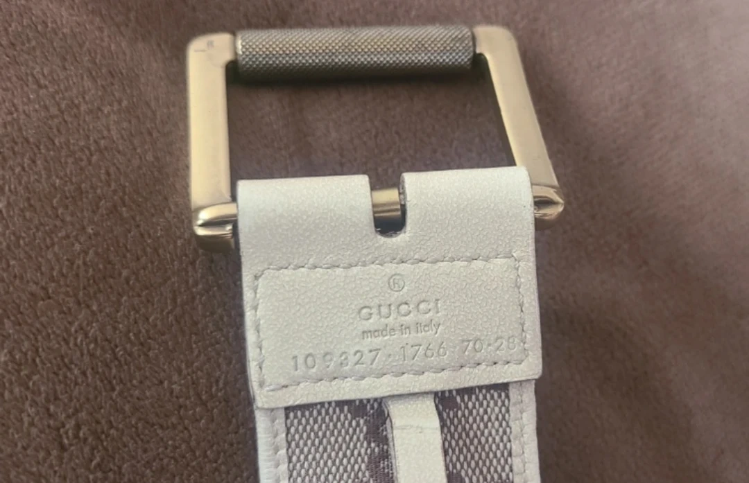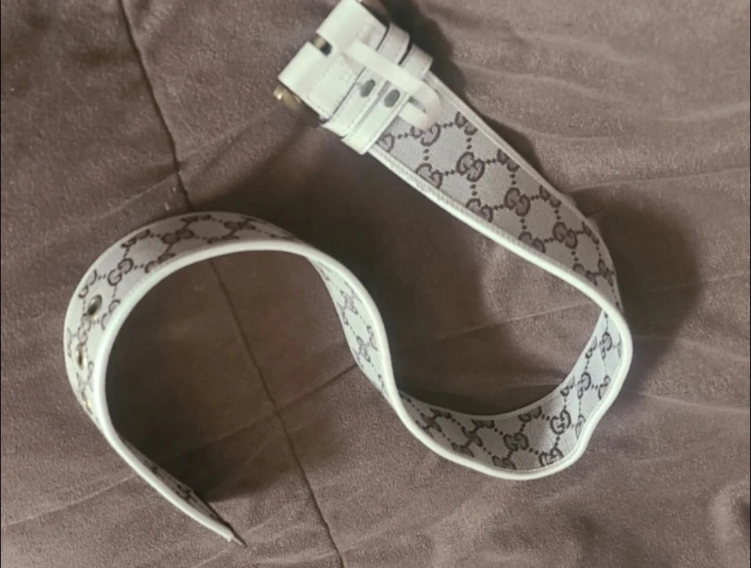 Selling a Vintage Gucci unisex kids belt. It has a white and brown pattern. There are no stains! Please see photos for condition