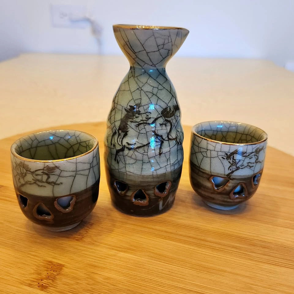 See my other listings for one more sake set (undamaged) and other items available.