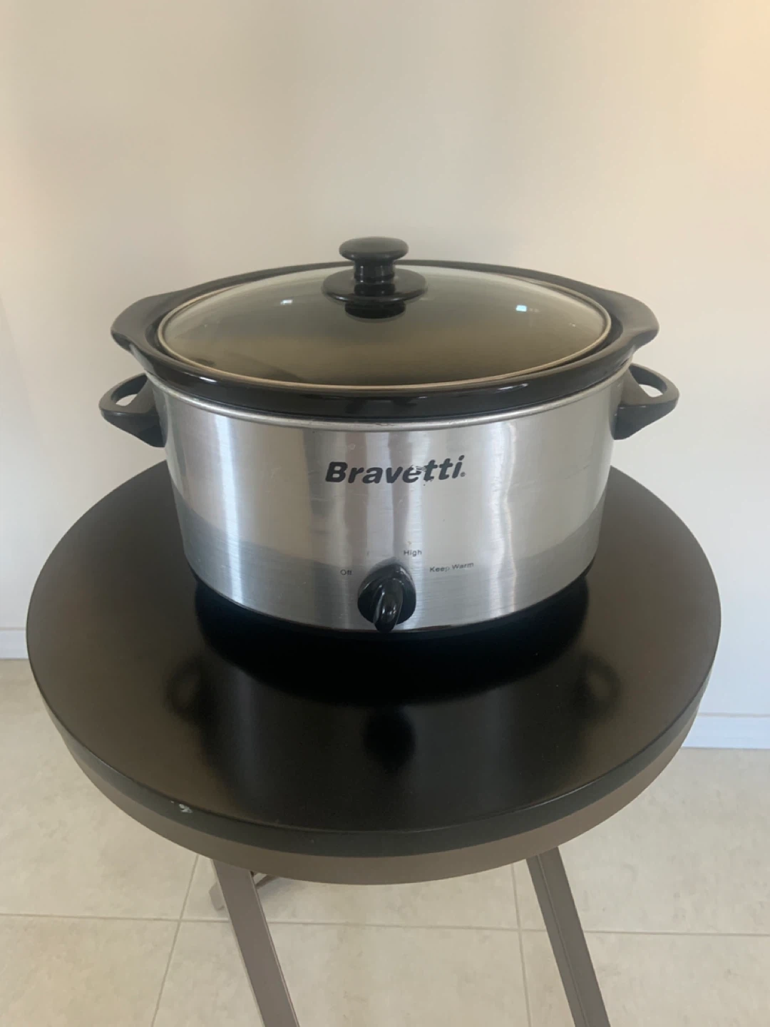 Selling a Bravetti slow cooker in great condition! It comes with a glass lid and has settings for off, low, high, and keep warm. Perfect for making soups, stews, and more!