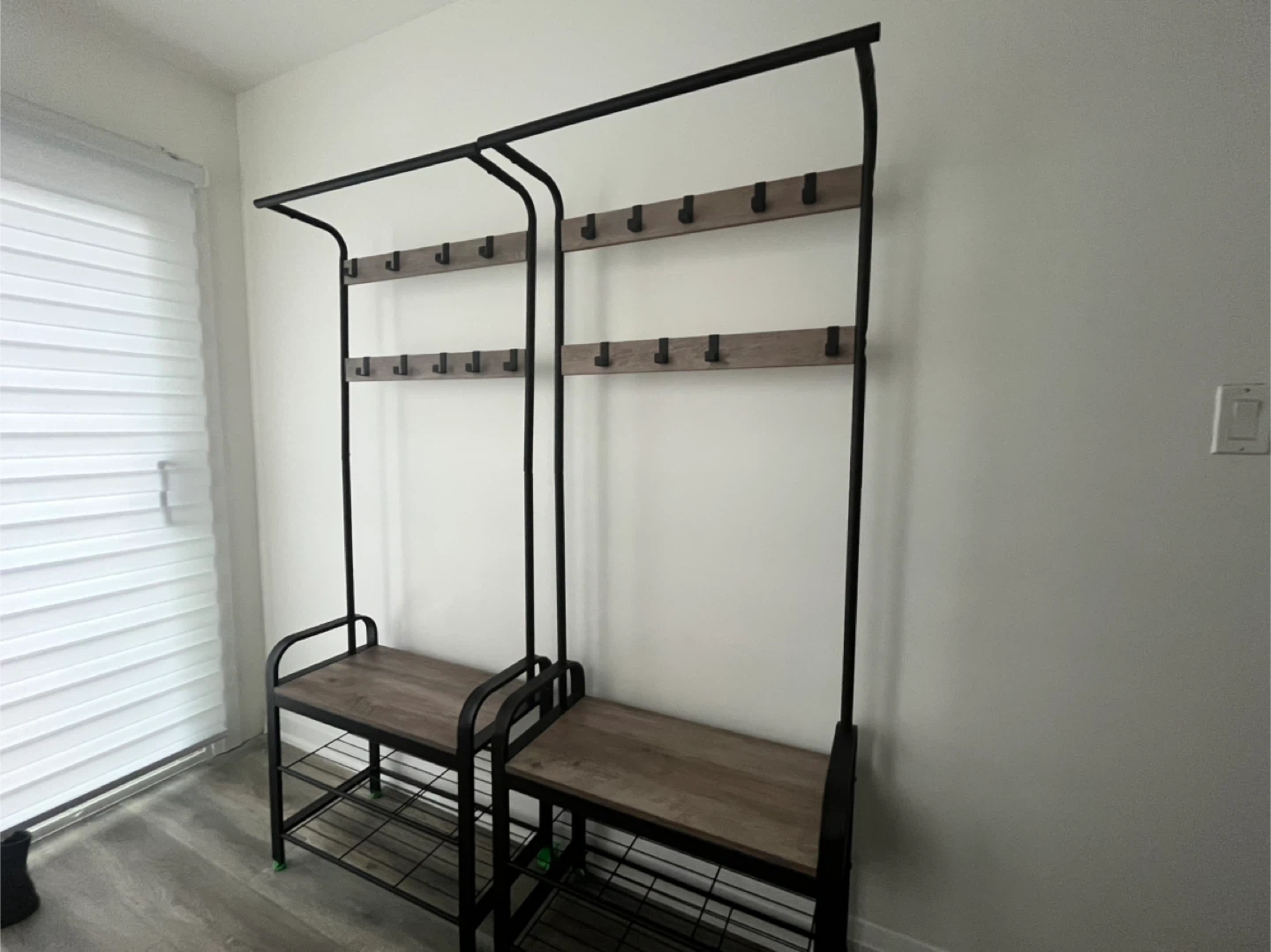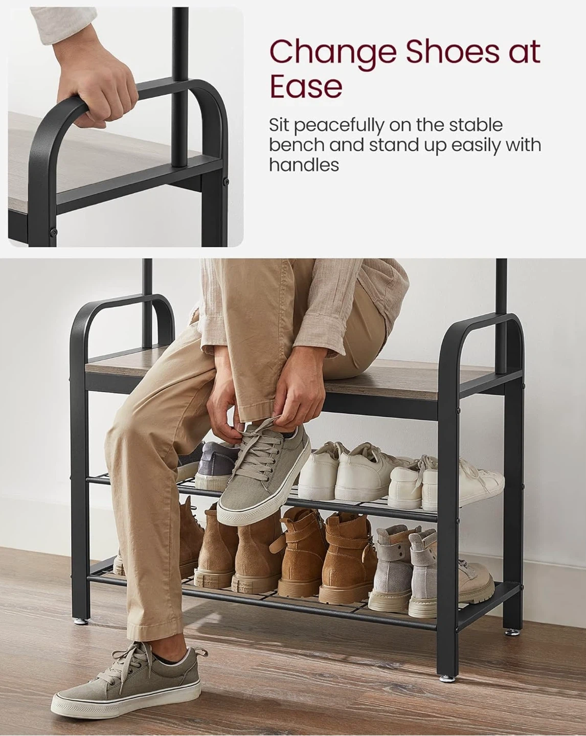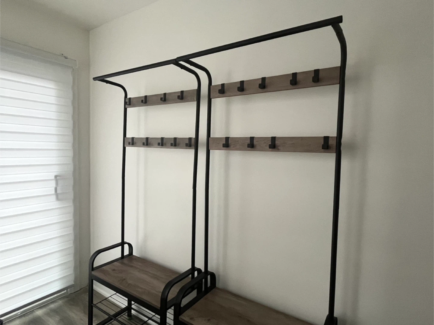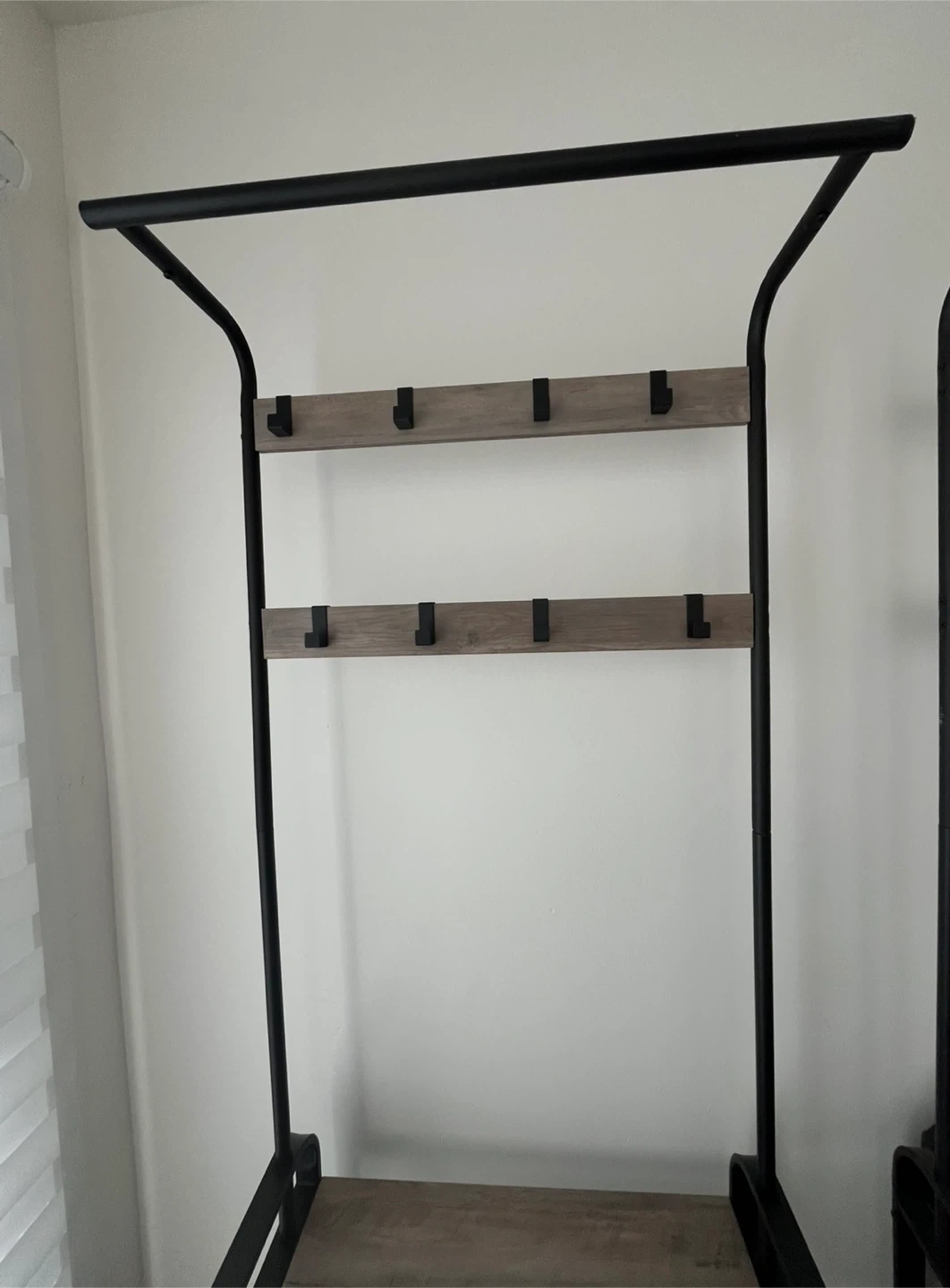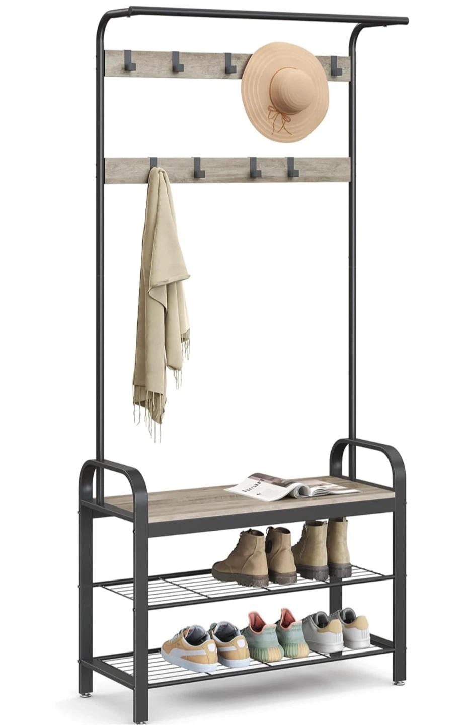 I have 2 of these, This hall tree comes with 9 removable hooks for easy access to your items. The robust hanging bar can hold up to 22 lb, providing stable support. It also features a stable bench with handles for changing shoes with ease. Dimensions are approximately 72.1" (height) x 33.1" (width) x 13.3" (depth).