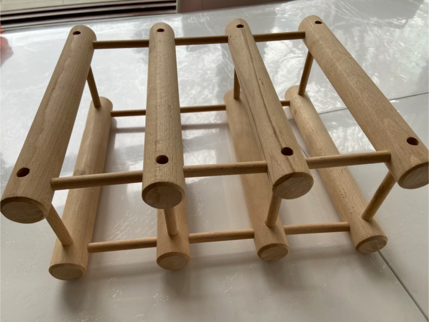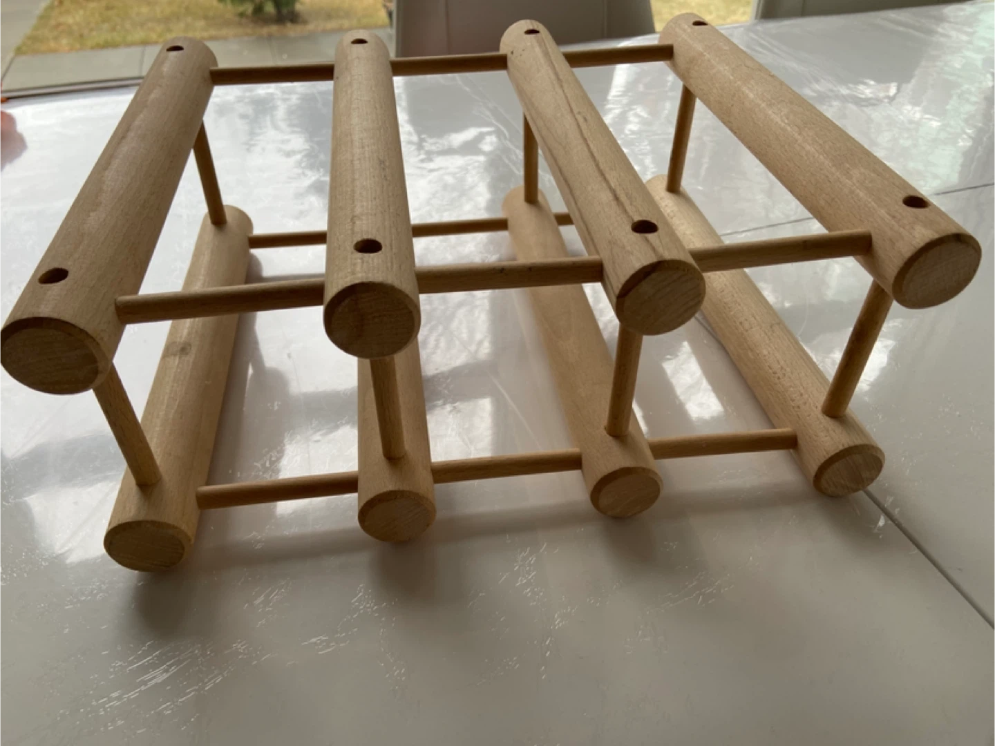 Solid wood wine rack. It's in great condition and perfect for storing your wine bottles.