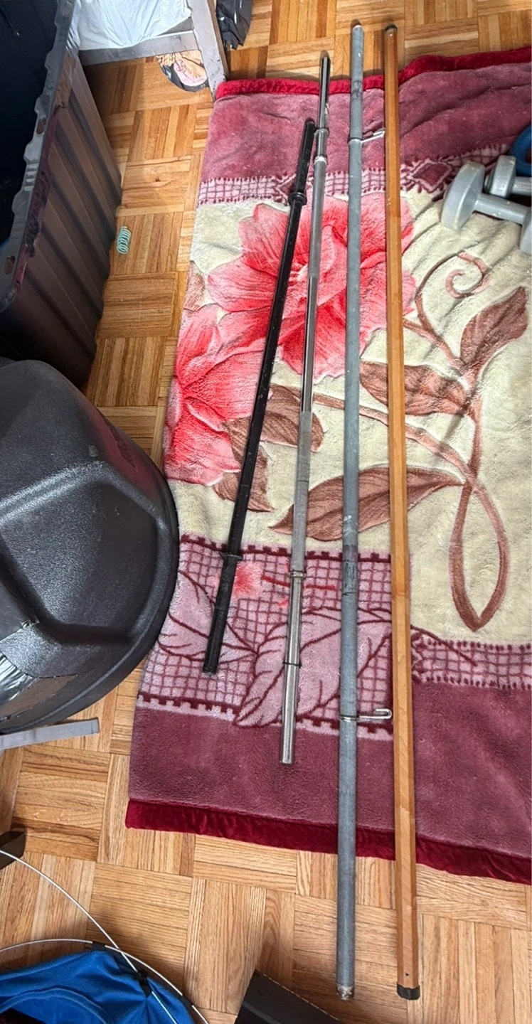 Weightlifting Bars and 1 yoga stretching stick