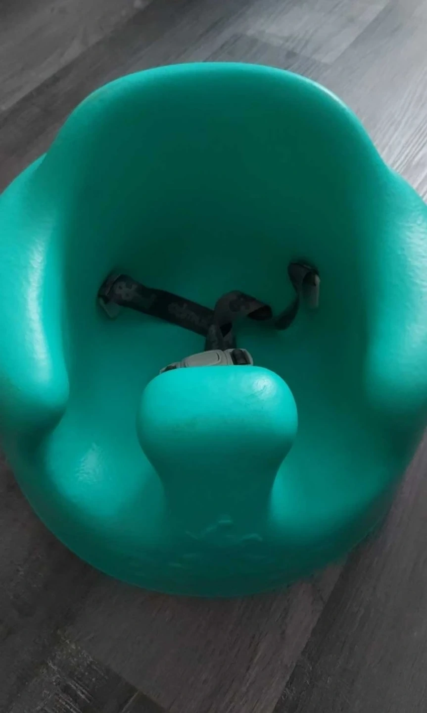 Selling a Bumbo floor seat in turquoise! It's great for helping little ones sit up and explore their surroundings. The seat includes a safety harness for added security. It's in good condition and ready for a new home