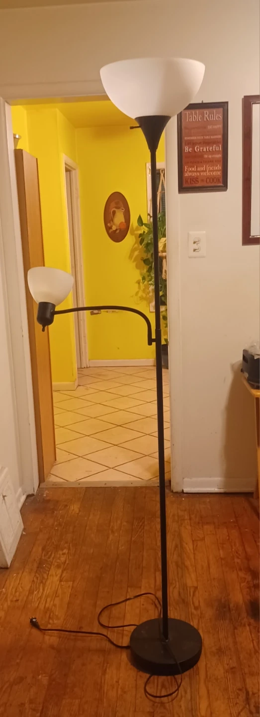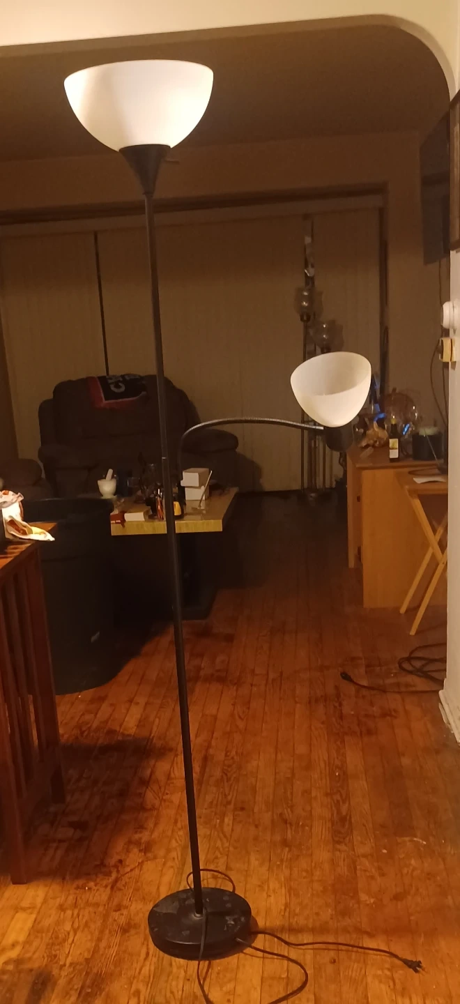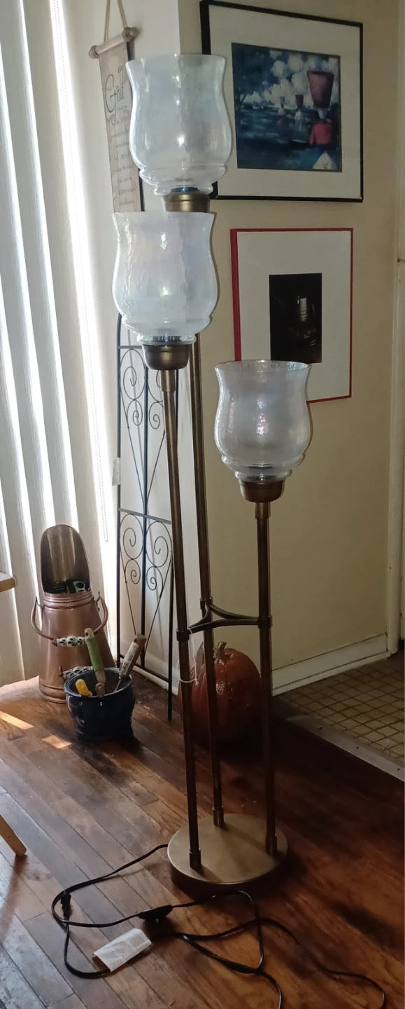 This is a beautiful 3-light floor lamp and 2 bulb floor lamp that would look great in any room! It has a sturdy base and a foot switch for easy on and off. The lamp provides a warm and inviting glow, perfect for creating a cozy atmosphere