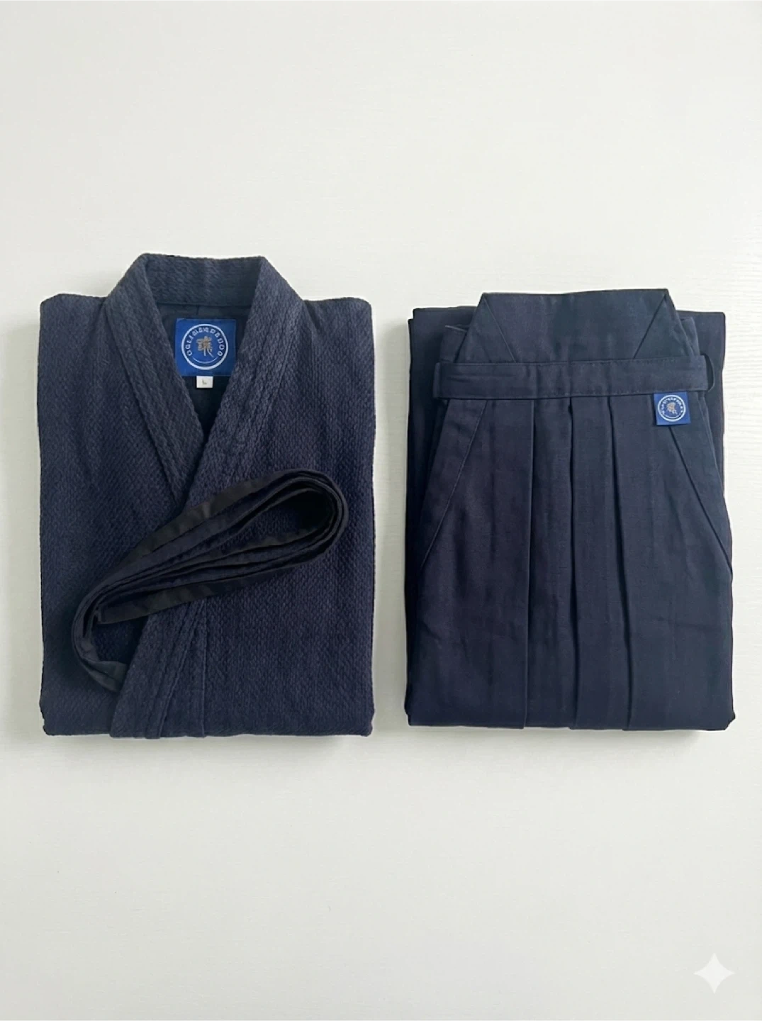 A Kendo uniform set including the Gi (jacket) and Hakama (pants), crafted from high-quality, durable fabric suitable for rigorous training. Never worn. Size 1L for top, 22 for bottom, fit 150-160cm