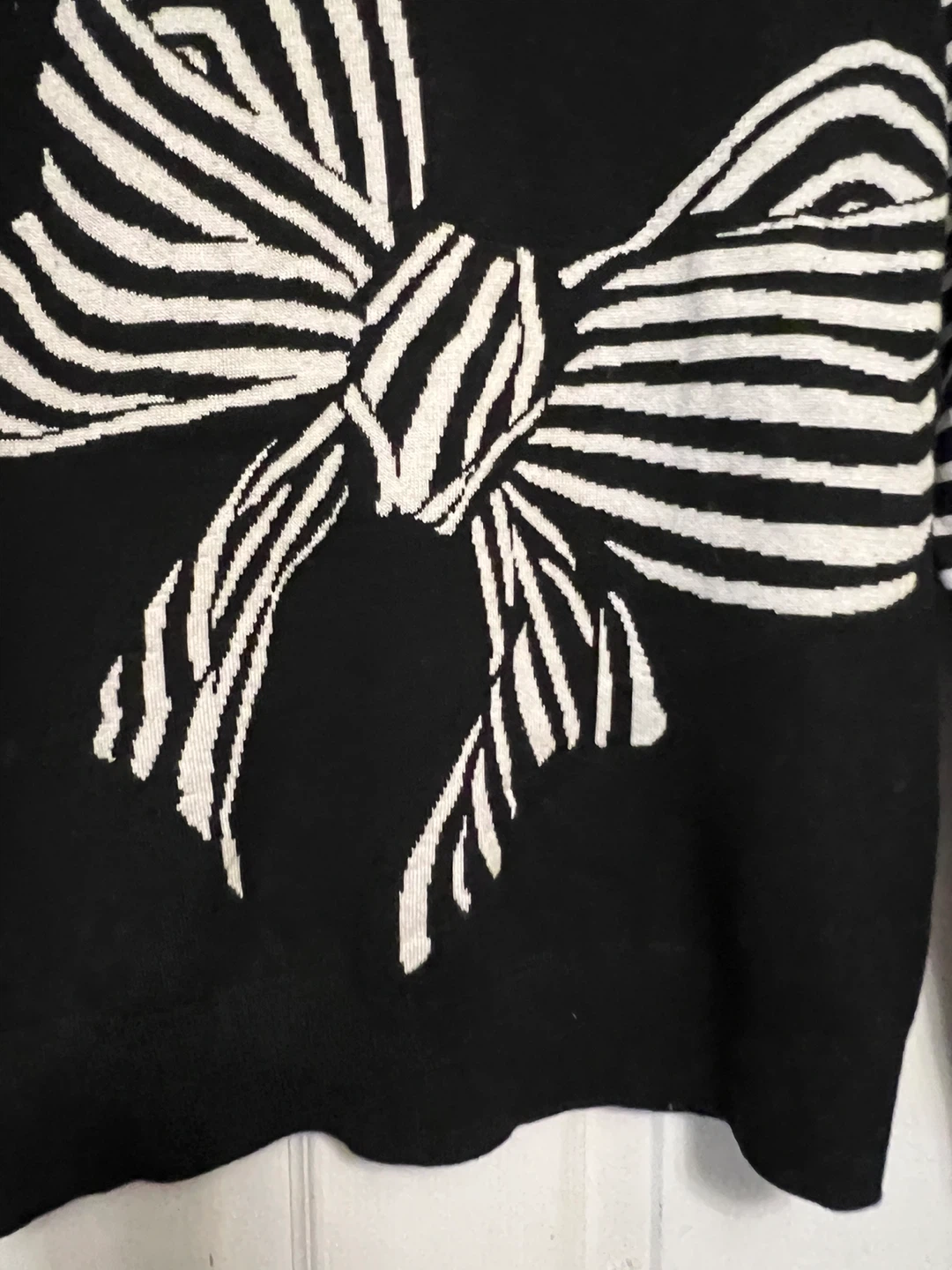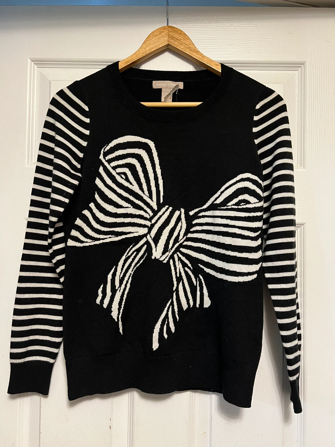 A cute Banana Republic sweater featuring a black and white bow design! It's a size small and in great condition. Perfect for adding a touch of fun to your wardrobe