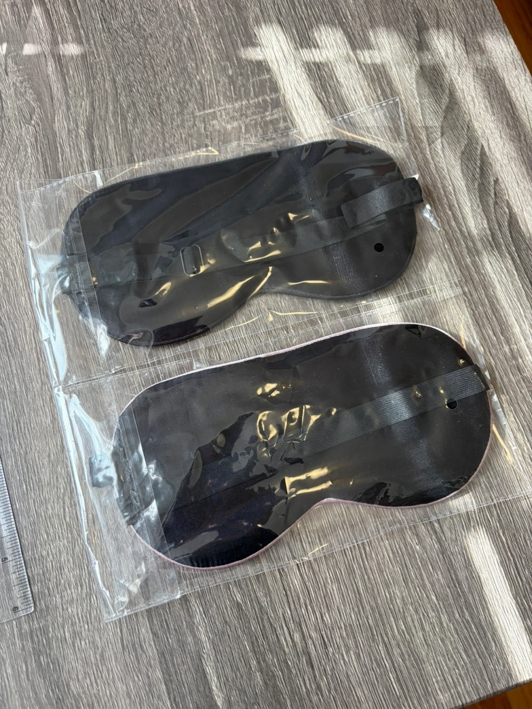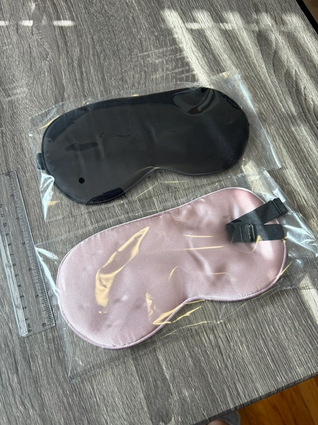 Selling a set of sleep eye masks in black and pink. They're still in their original packaging and have adjustable straps for a comfortable fit. Perfect for blocking out light and getting a good night's sleep.