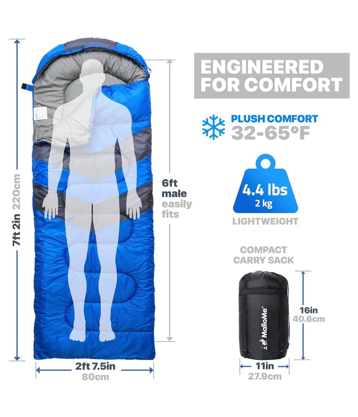 Get ready for your next camping trip with this MalloMe sleeping bag! It's designed for both kids and adults, and provides comfort in temperatures from 32-65°F.