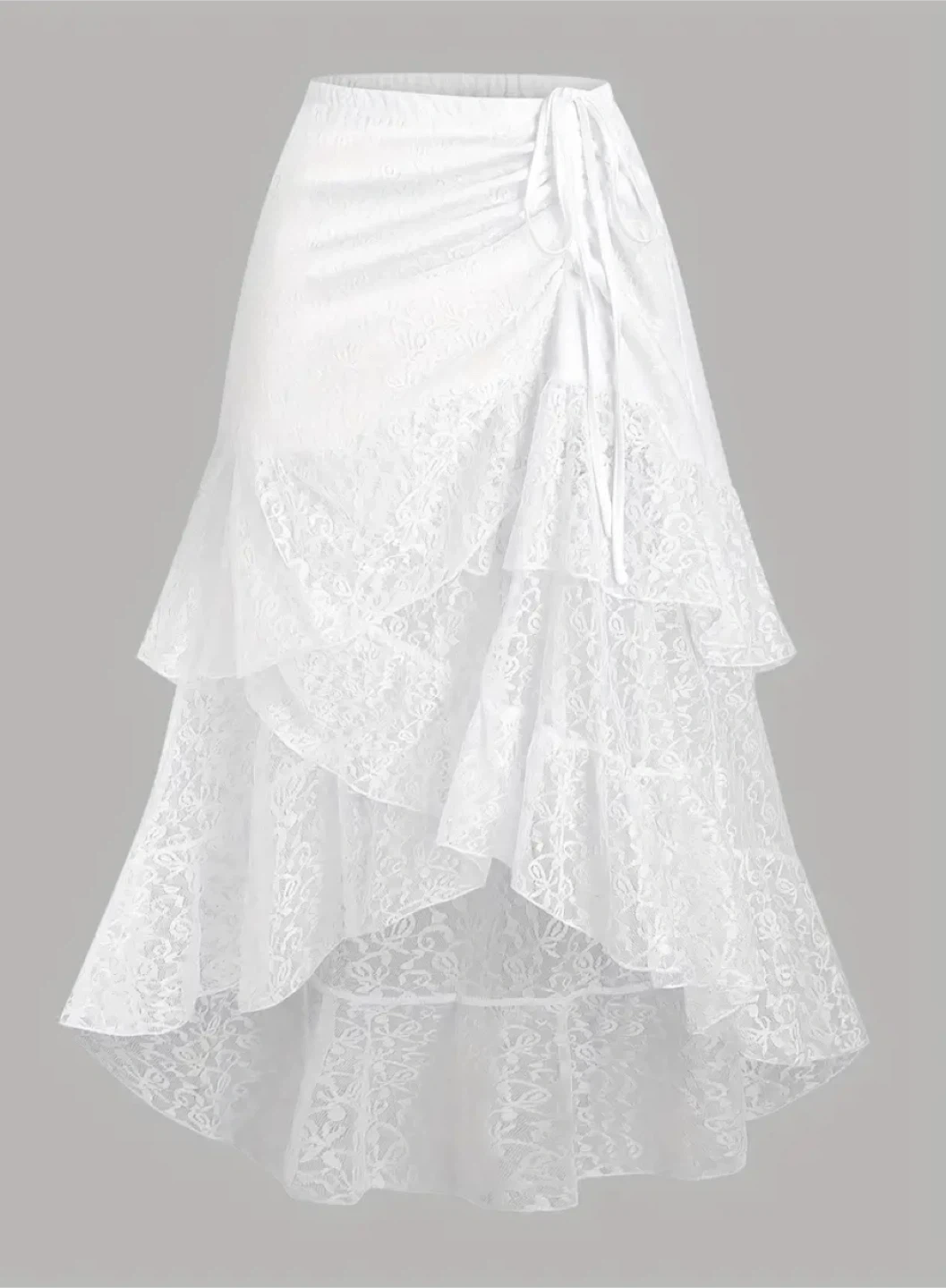 Selling a beautiful white layered lace skirt. It's in great condition and would be perfect for a special occasion or adding a touch of elegance to your everyday style