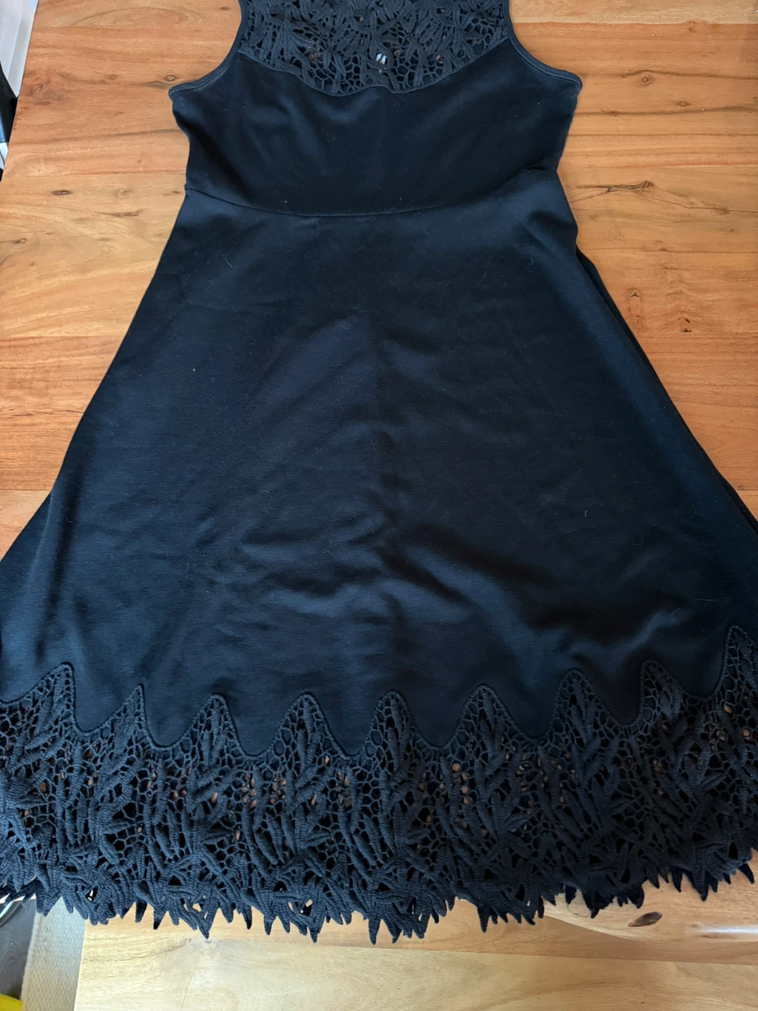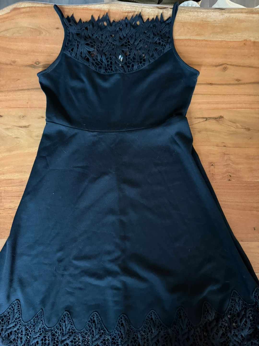 Selling a cute Free People black dress in size small! It features a lovely lace detailing around the neckline and hem. Perfect for a night out or a special occasion!
