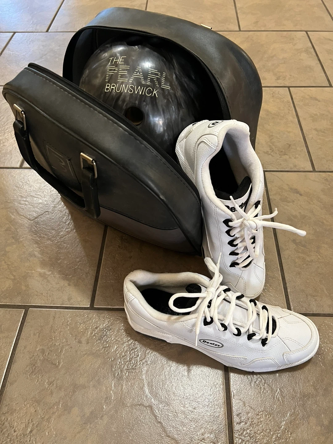 Dexter bowling shoes size 8.5 (fits like a 9 or 9.5) in white! They're in good condition. Brunswick- The Pearl ball in good condition. Brunswick Bag (with shoe compartment) in used condition. Open to offers.