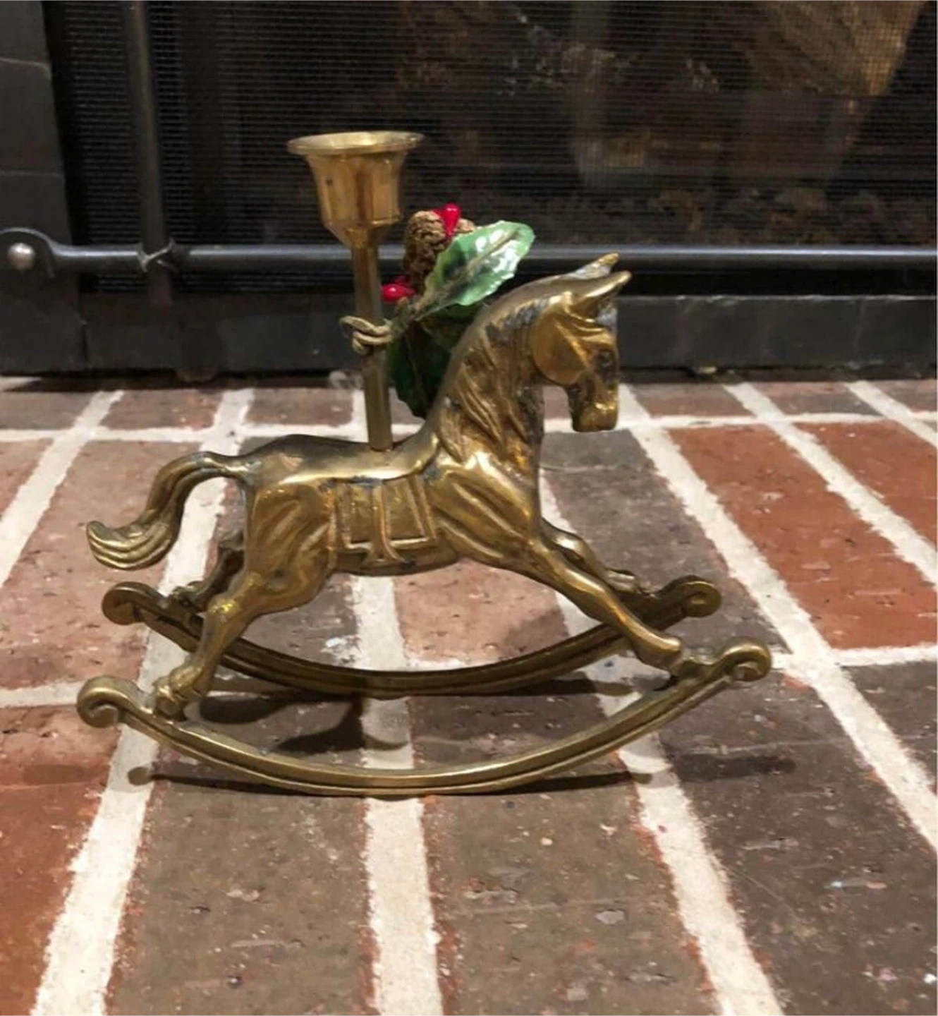Vintage Brass Rocking Horse Candlestick