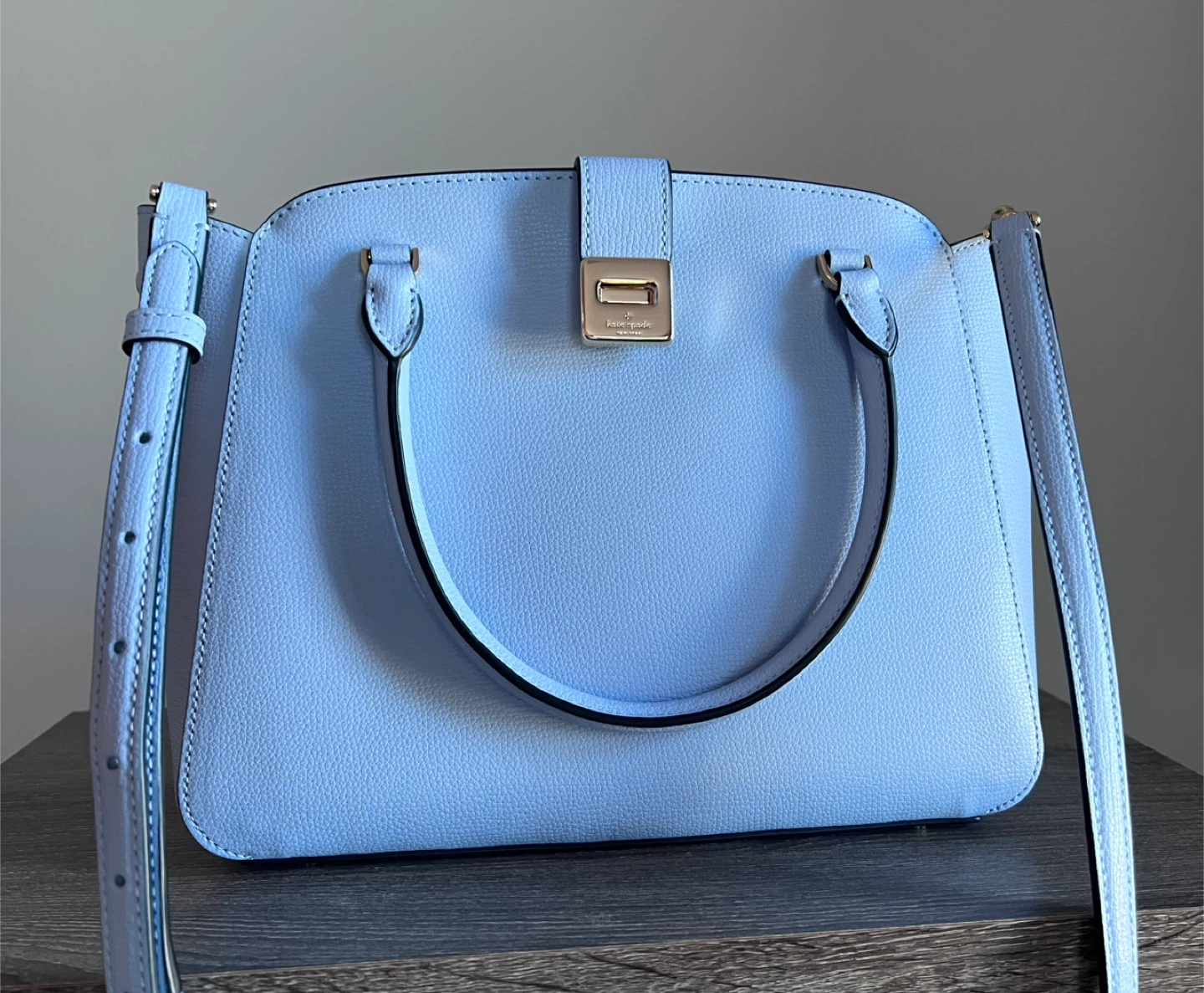 Here's a lovely Kate Spade satchel bag in a gorgeous blue colour with gold hardware. It is brand new, never worn! Perfect for adding a pop of colour to any outfit.