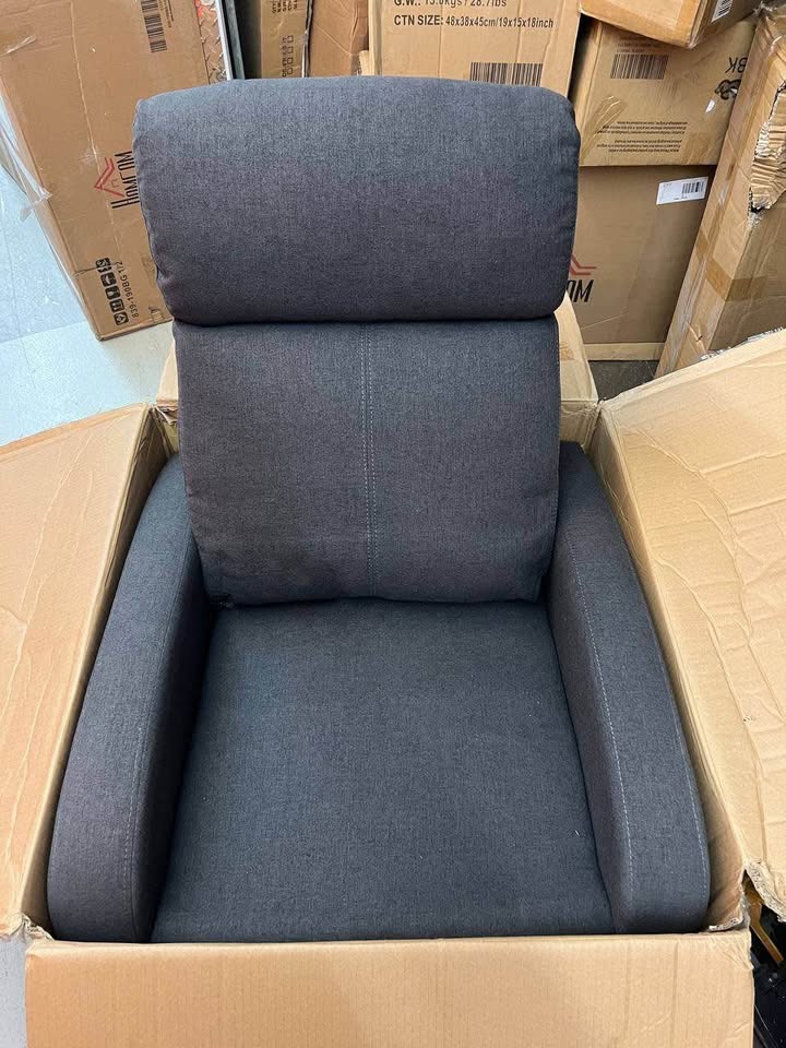 Manual Recliner Chair – Dark Grey | Comfortable, Stylish, and Durable Original price 350+taxes Condition: New Key Highlights: Maximum capacity 120 kg (Around 275lb) • Reclines manually for smooth comfort • Plush cushioning and cozy upholstery • Strong frame supports everyday use • Neutral dark grey matches any home décor • Perfect for living room, basement, or office Pickup in Scarborough