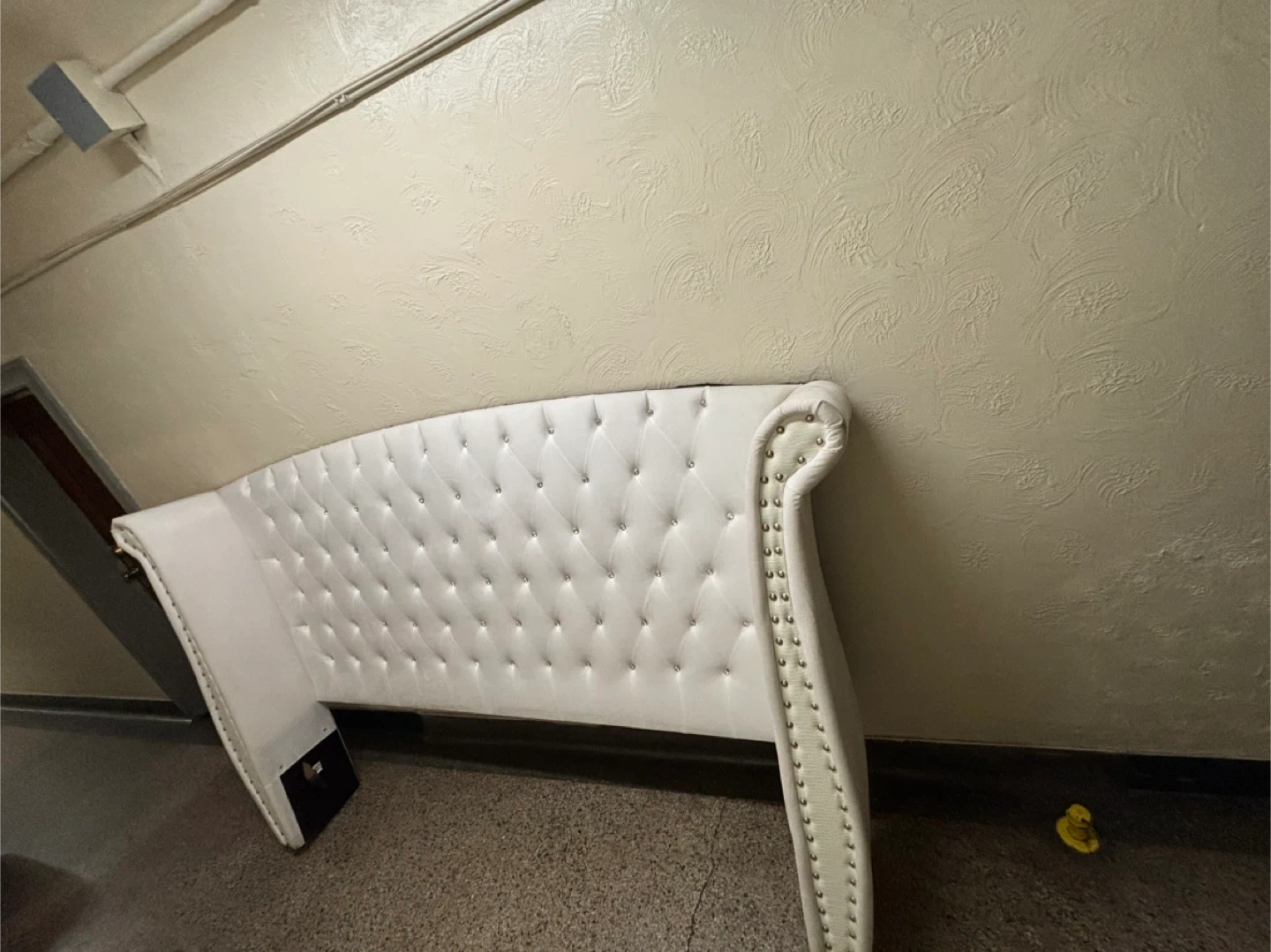 Selling a tufted headboard. It features a button-tufted design that adds a touch of elegance to any bedroom. The headboard is upholstered in a soft material. It's in great condition and ready to upgrade your sleeping space!