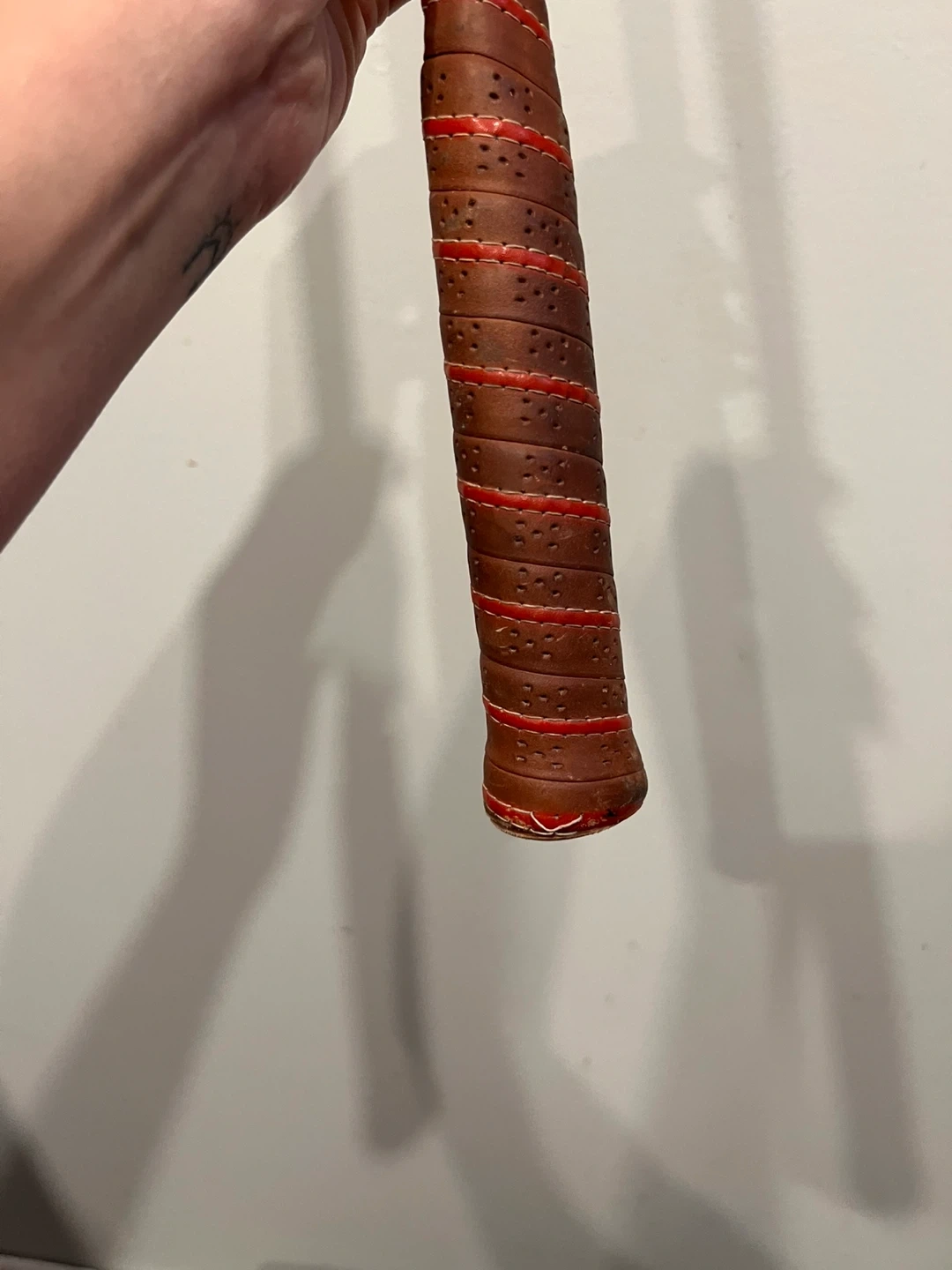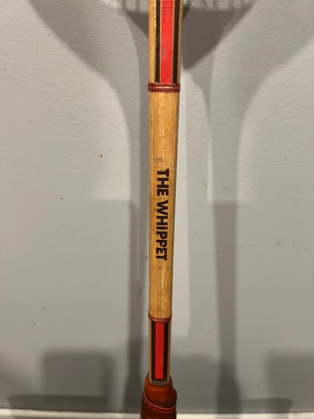 Selling a vintage Slazenger tennis racquet, model "The Whippet"! It's got a classic look and feel. The grip is wrapped in brown leather with red accents, and the frame has the iconic Slazenger logo. Perfect for collectors or anyone looking for a piece of tennis history