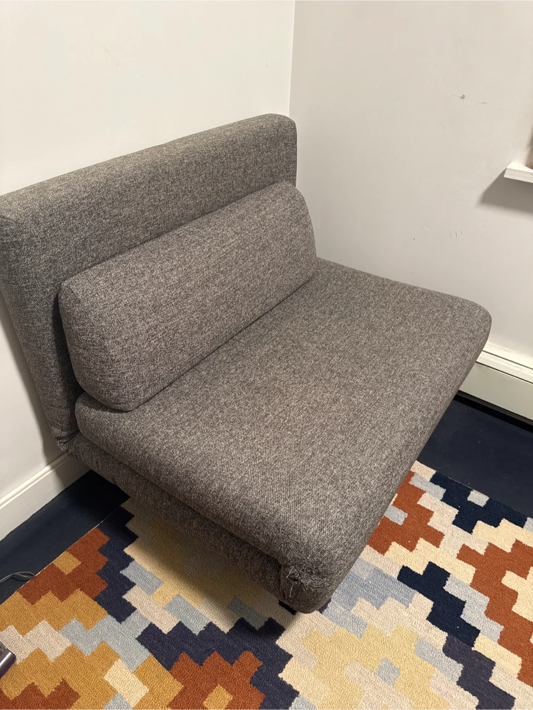 Selling a gray single sofa bed! It's in great condition and would be perfect for a small space or guest room. The material is a nice, neutral gray fabric. It's a versatile piece that can be used as a sofa or easily converted into a bed