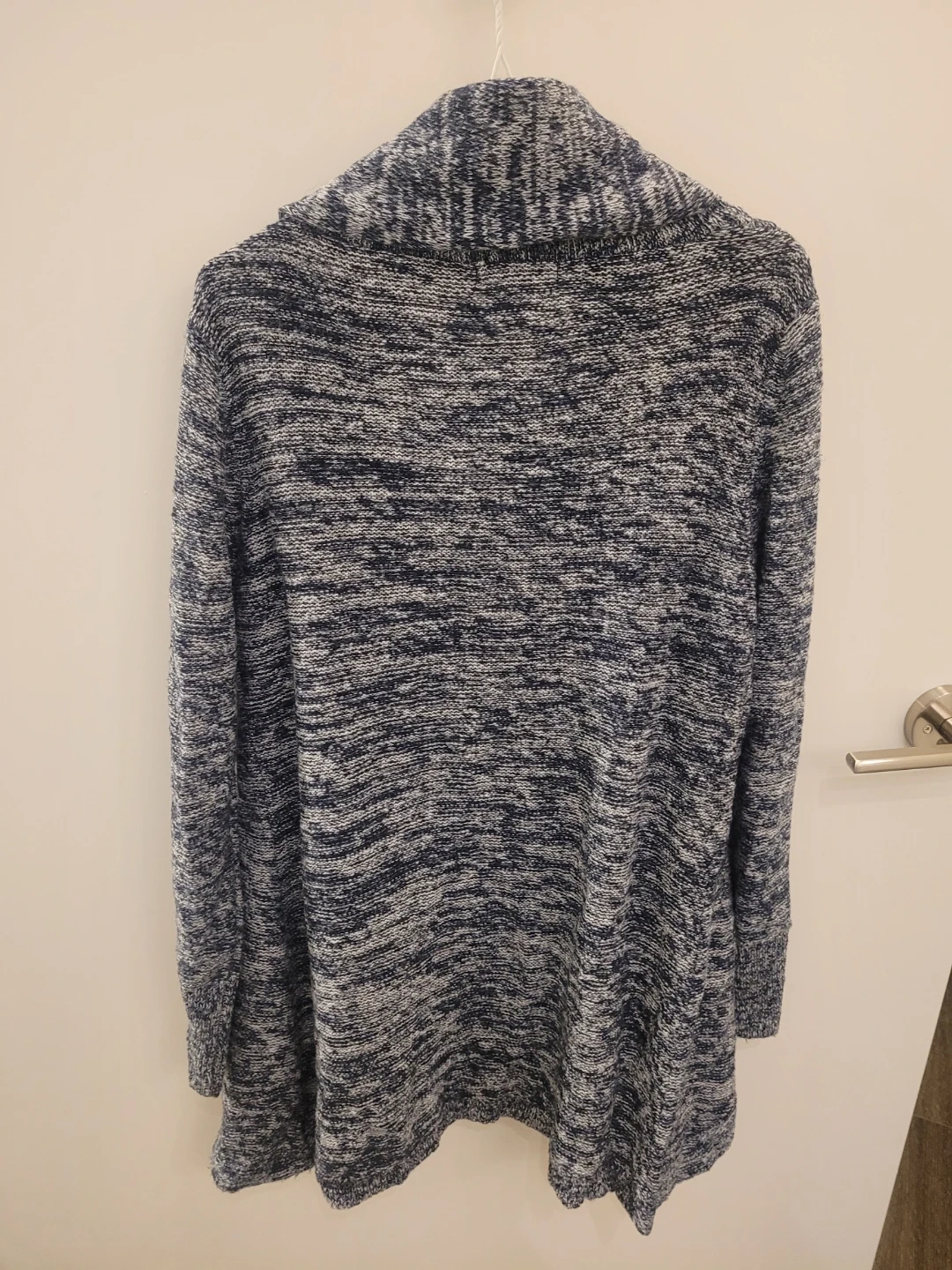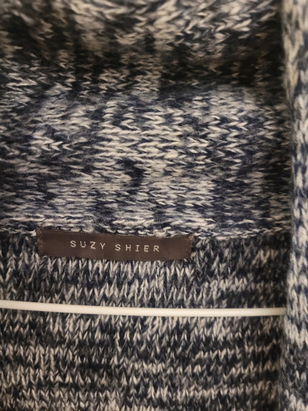 Selling a cozy Suzy Shier cardigan in a lovely blue and white marled pattern. It's perfect for layering and adding a touch of warmth to any outfit!