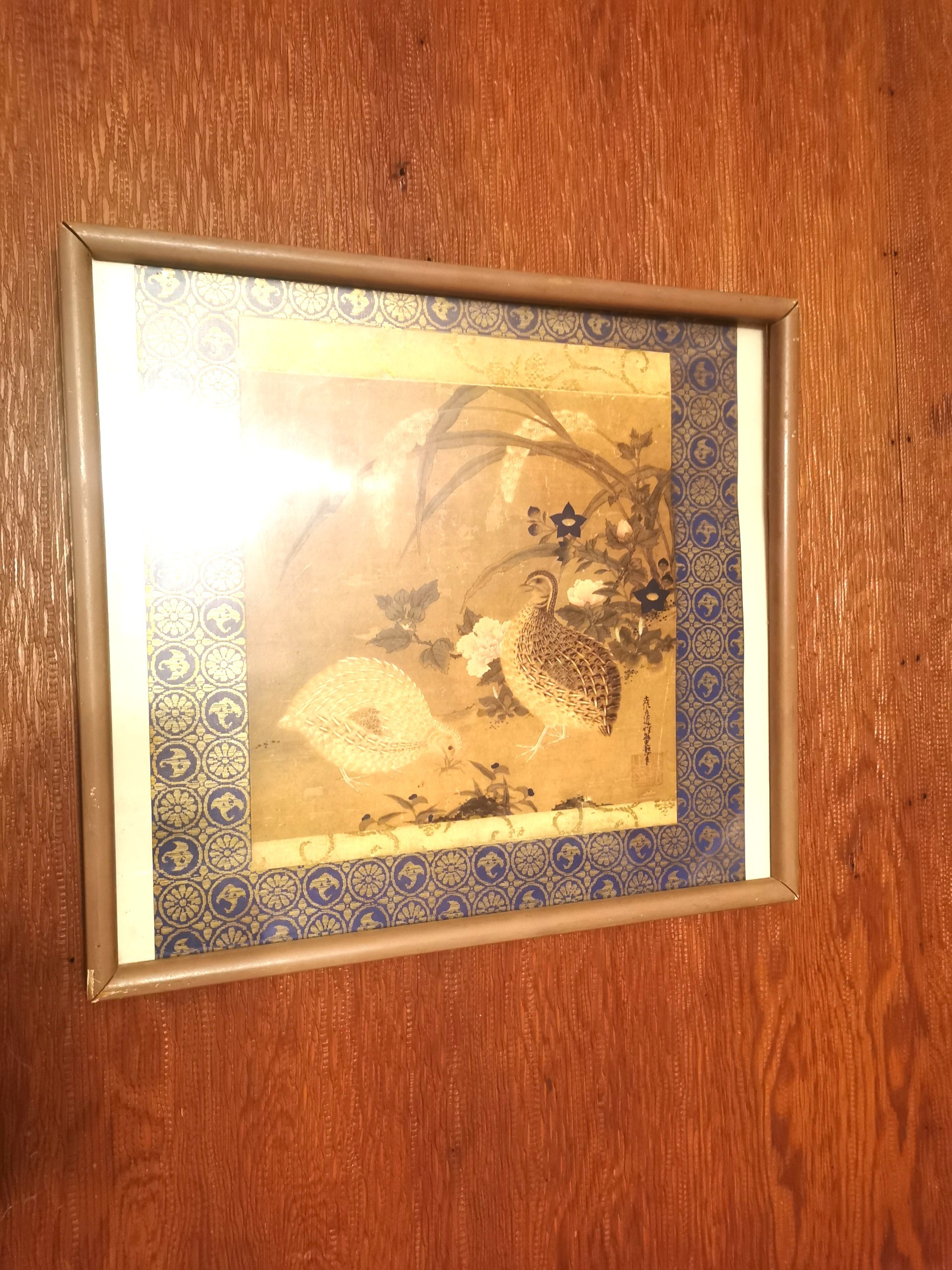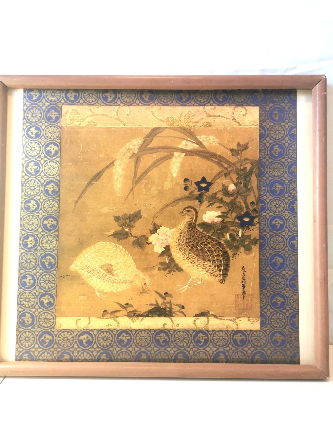 Tosa Mitsuoki Woodblock Print Quail Flowers Japan DAMAGED FRAME