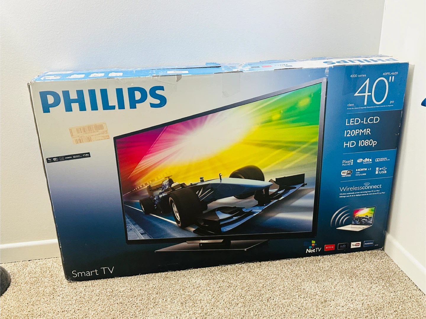 Selling a Philips 40-inch Smart TV, model 40PFL4609. It's an LED-LCD with 120PMR and HD 1080p resolution. A great addition to any living room!
