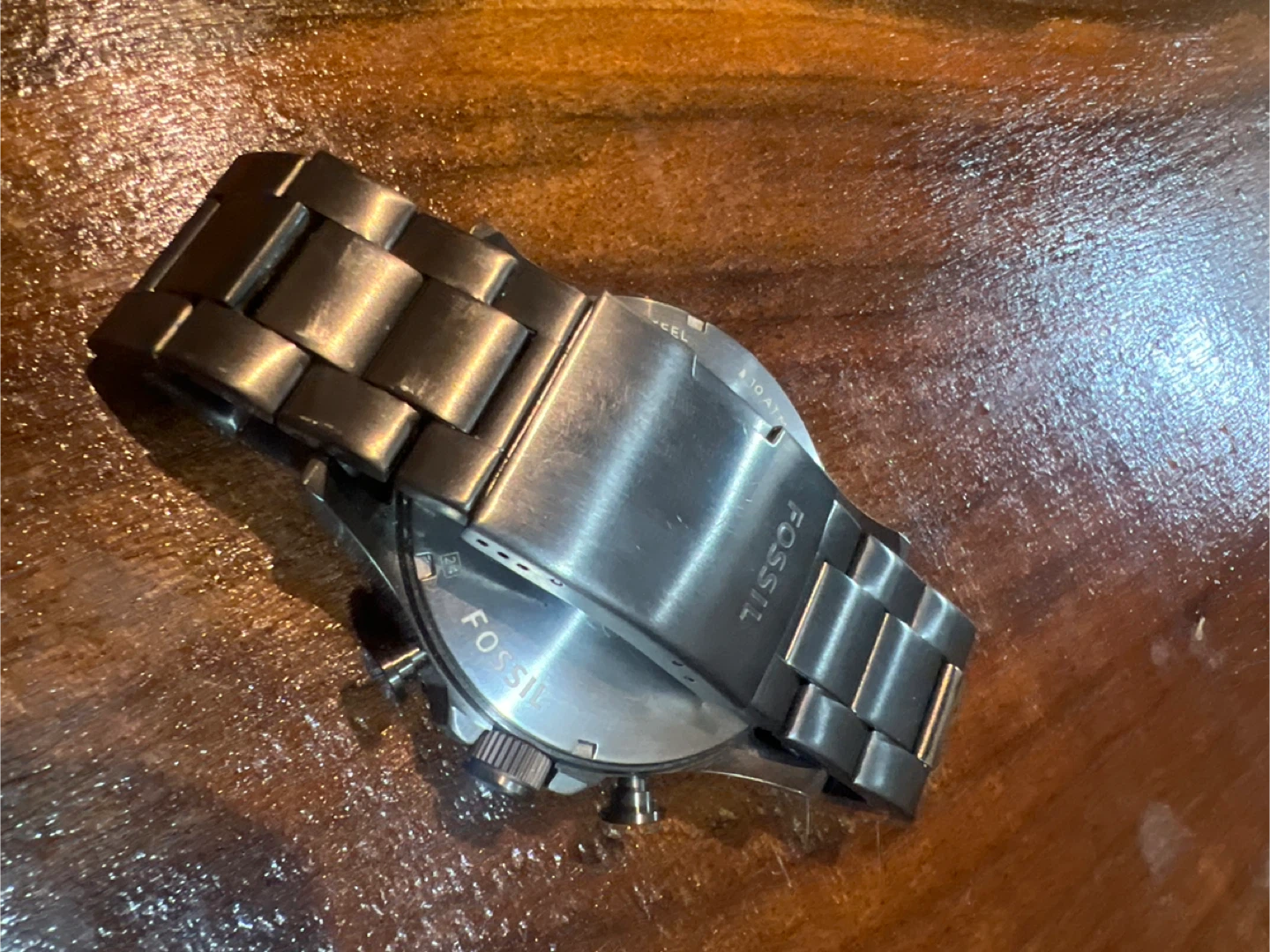 Selling a Fossil men's watch with a stainless steel band. It's in great condition and ready for a new wrist!