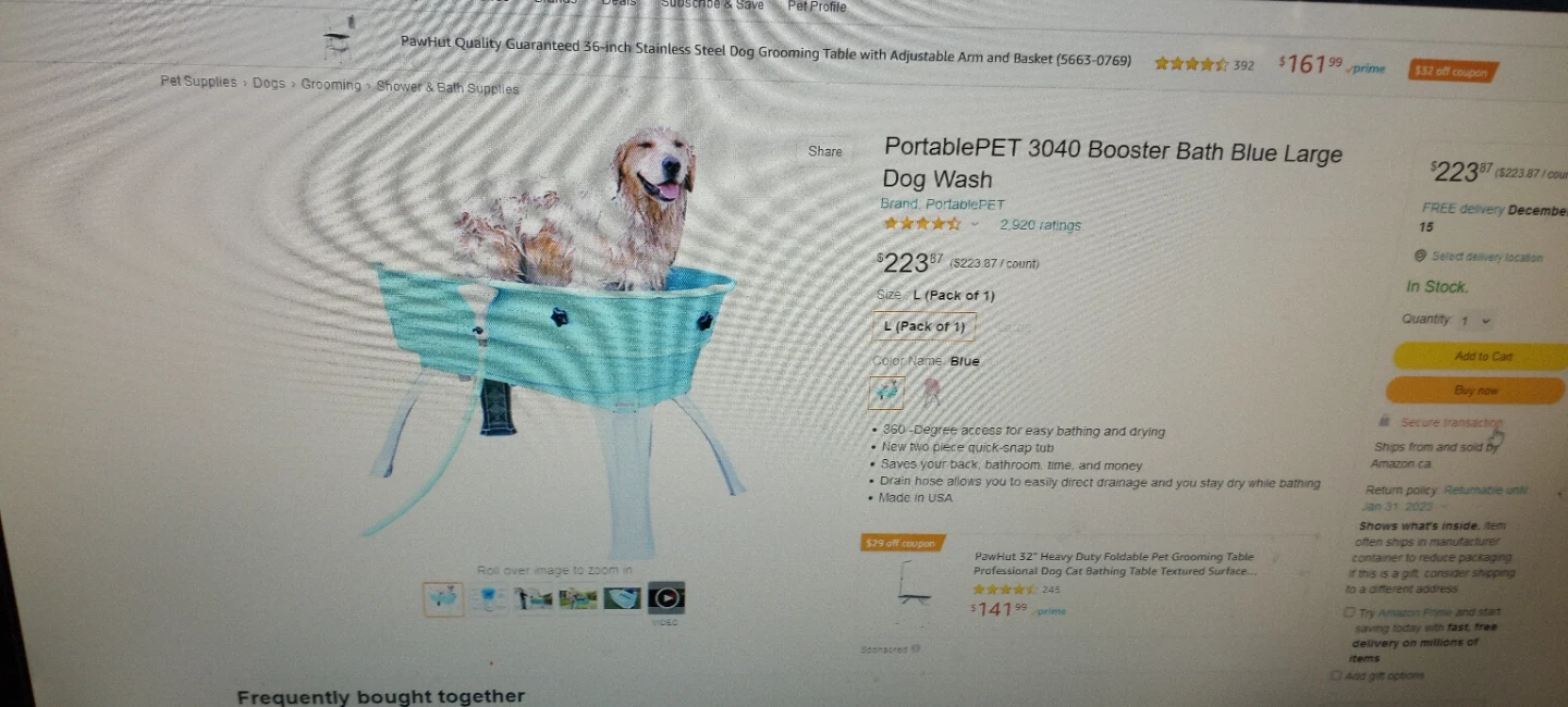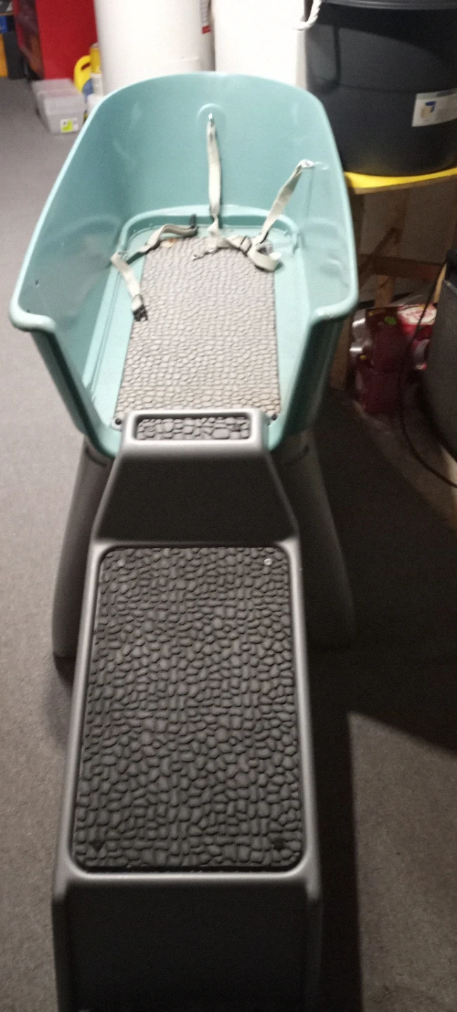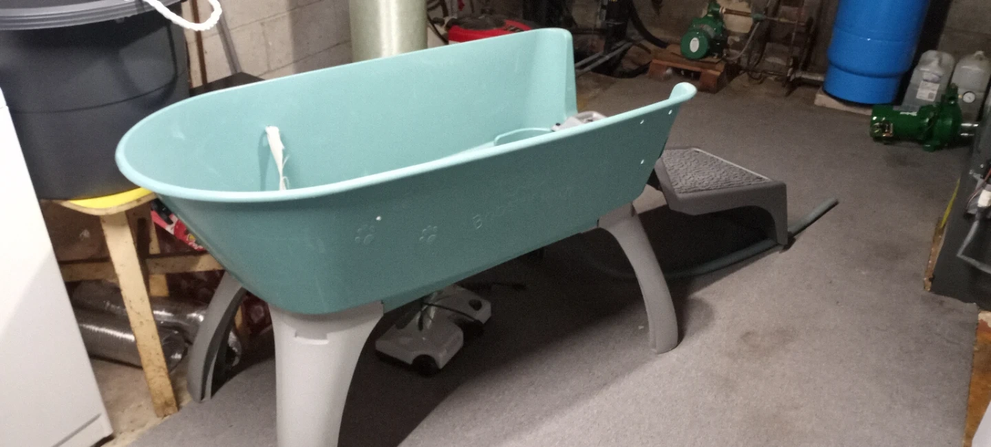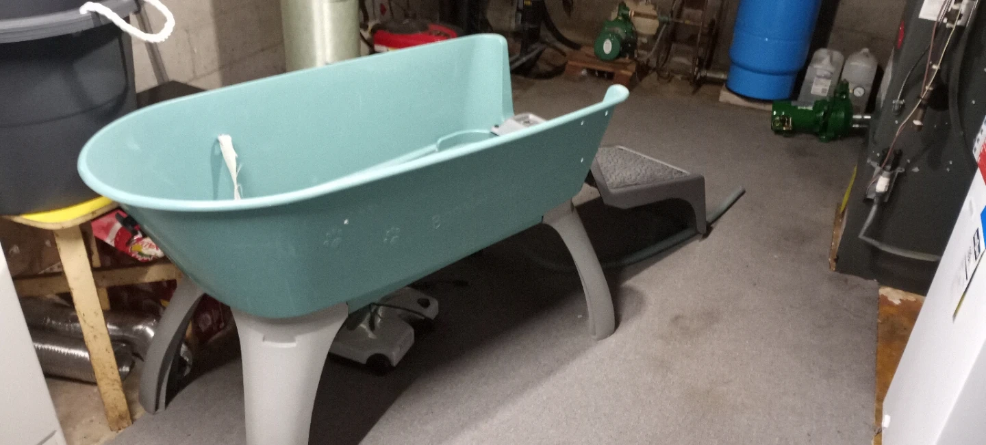 Selling a PortablePET 3040 Booster Bath in blue! It's in great condition and ready for its new home. This large-sized bath is perfect for easy bathing and drying of your furry friend. It features 360-degree access for easy bathing, a two-piece quick-snap tub, and a drain hose allowing for direct drainage while keeping your bathroom clean and dry