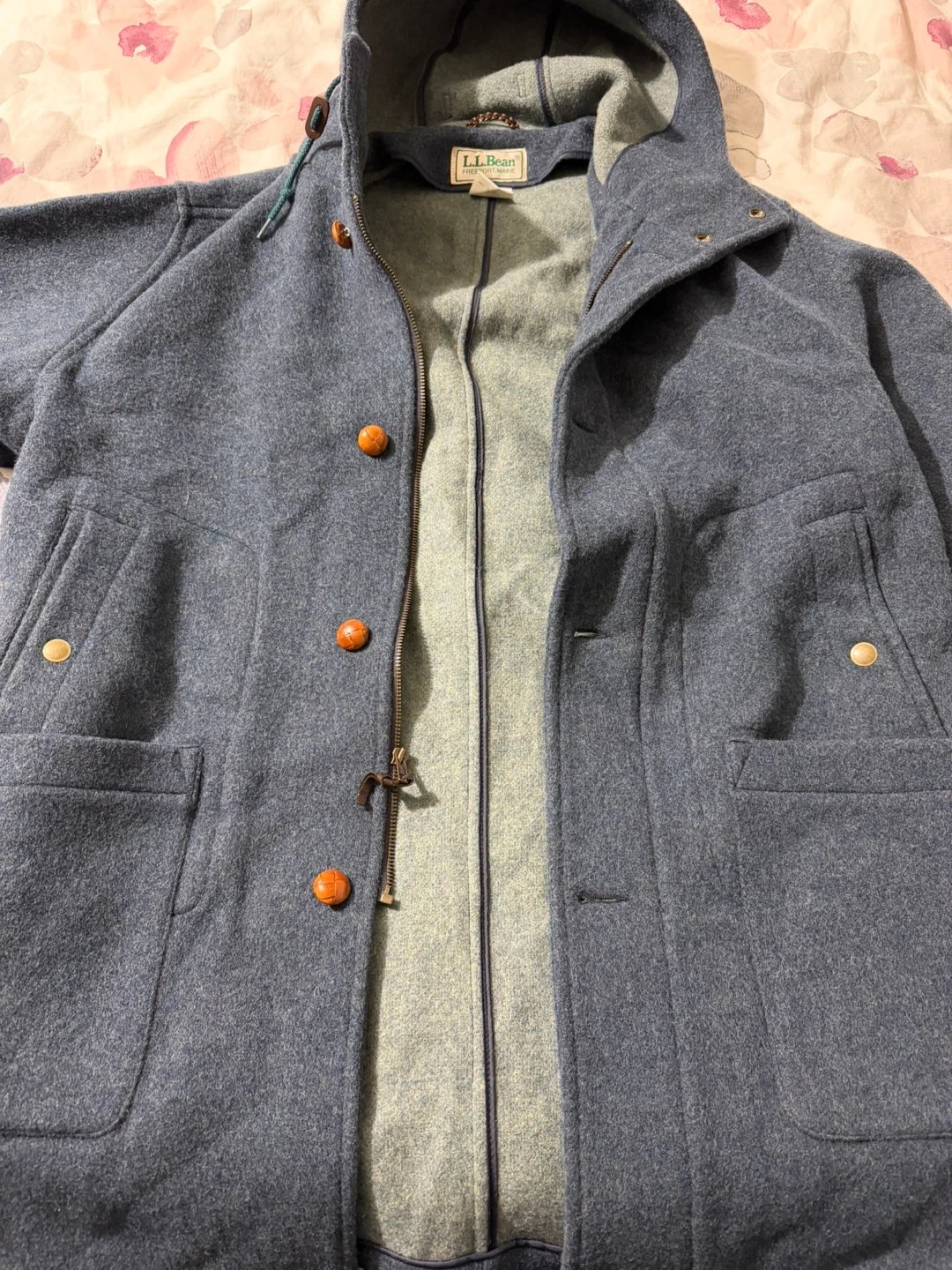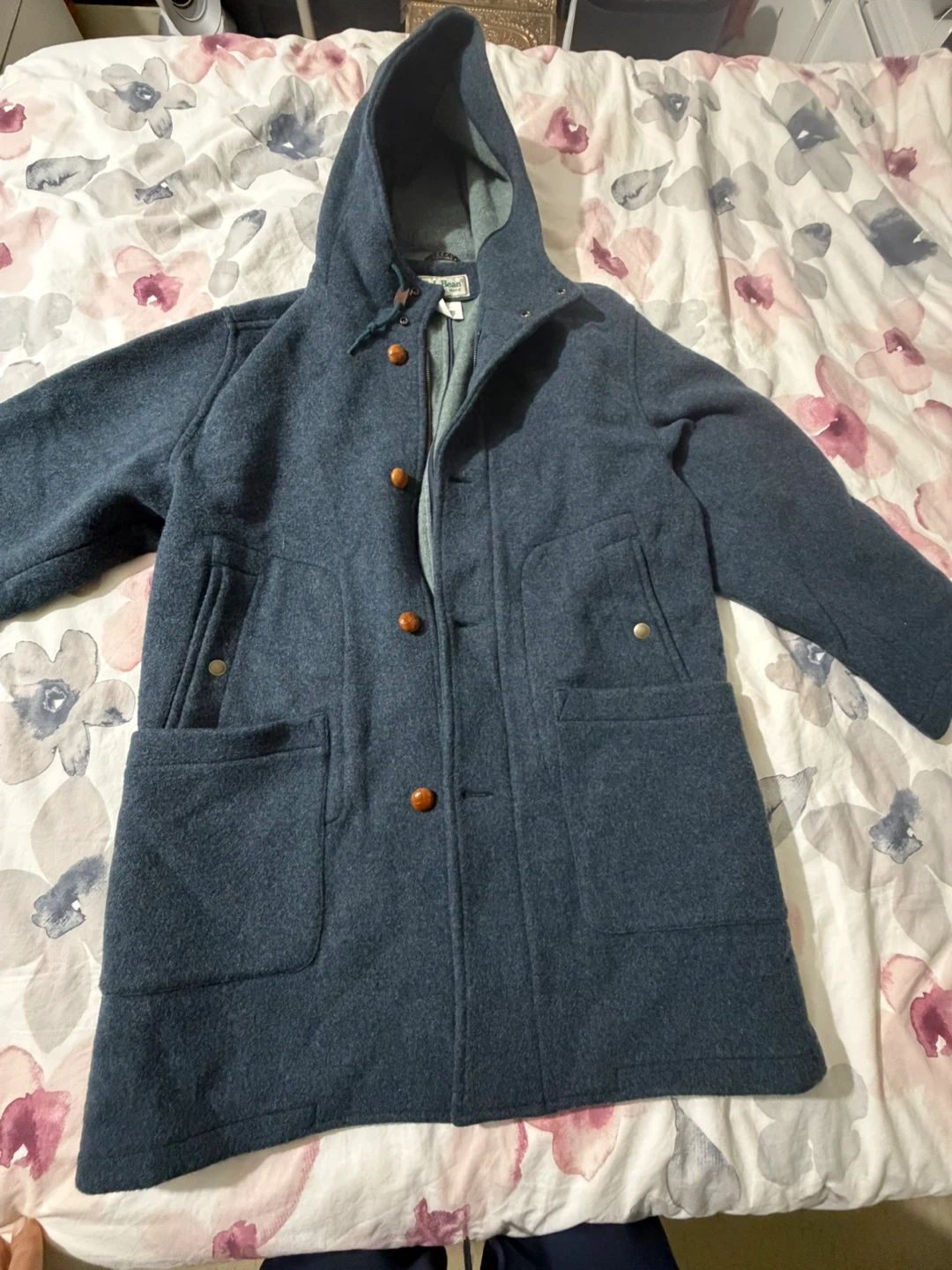 Here is an L.L.Bean wool blend hooded coat in a plus size. It is a stylish and warm coat, perfect for colder climates. The coat has a hood and button closure. It is made from a wool blend material. This extremely rare coat from the 90s is in perfect condition.