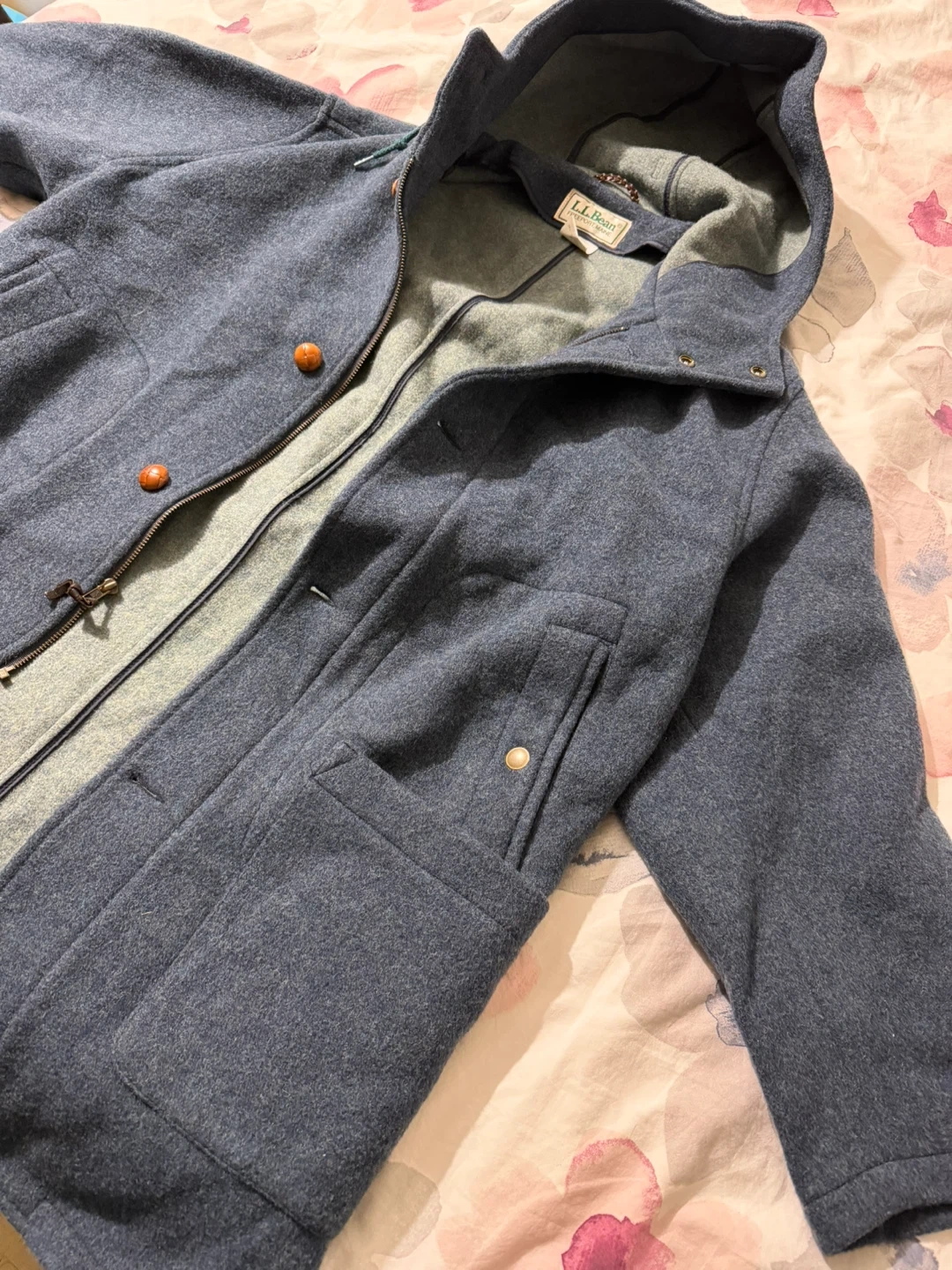 L.L.Bean Wool Blend Hooded Coat - Size Large