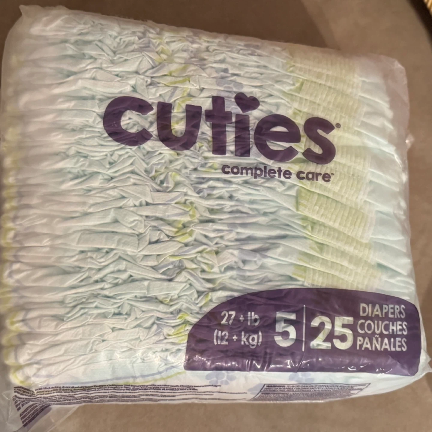 I'm selling a pack of Cuties Complete Care diapers in size 5, suitable for babies 27+ lb (12+ kg)