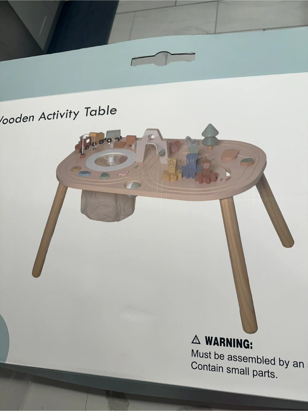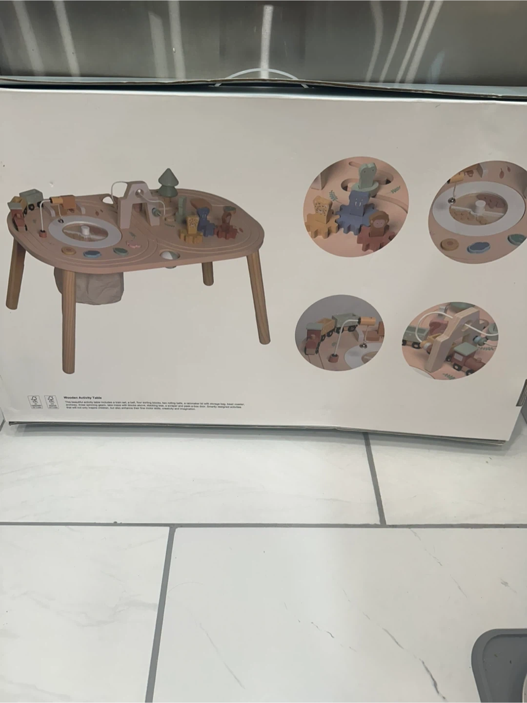 Selling a brand new Wooden Activity Table still in its original box! It's a fun and engaging toy for kids. The table features a variety of activities to keep little ones entertained. Must be assembled by an adult and contains small parts, so please keep that in mind!