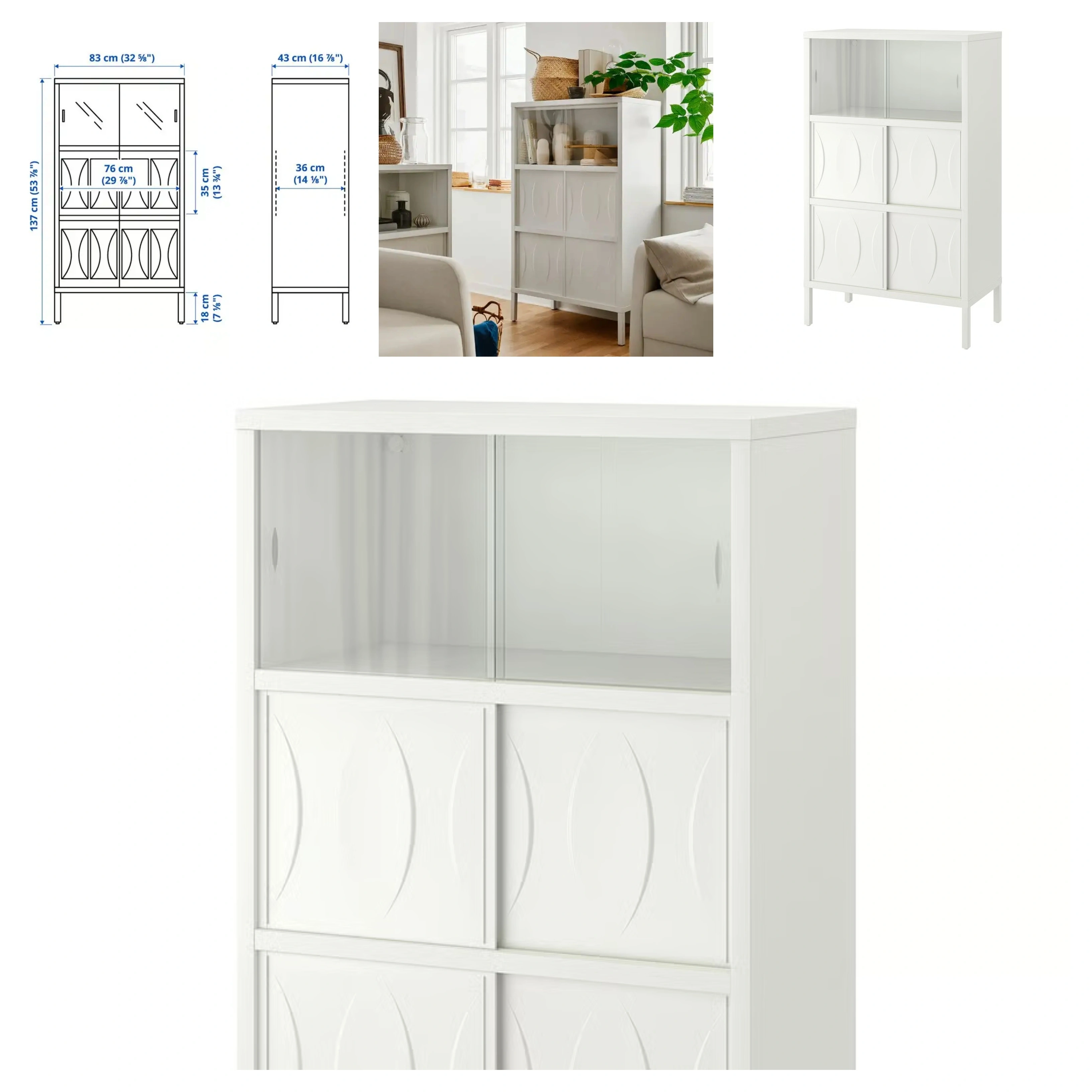 IKEA KALKNÄS Cabinet with Sliding Doors White Assembled NEW!