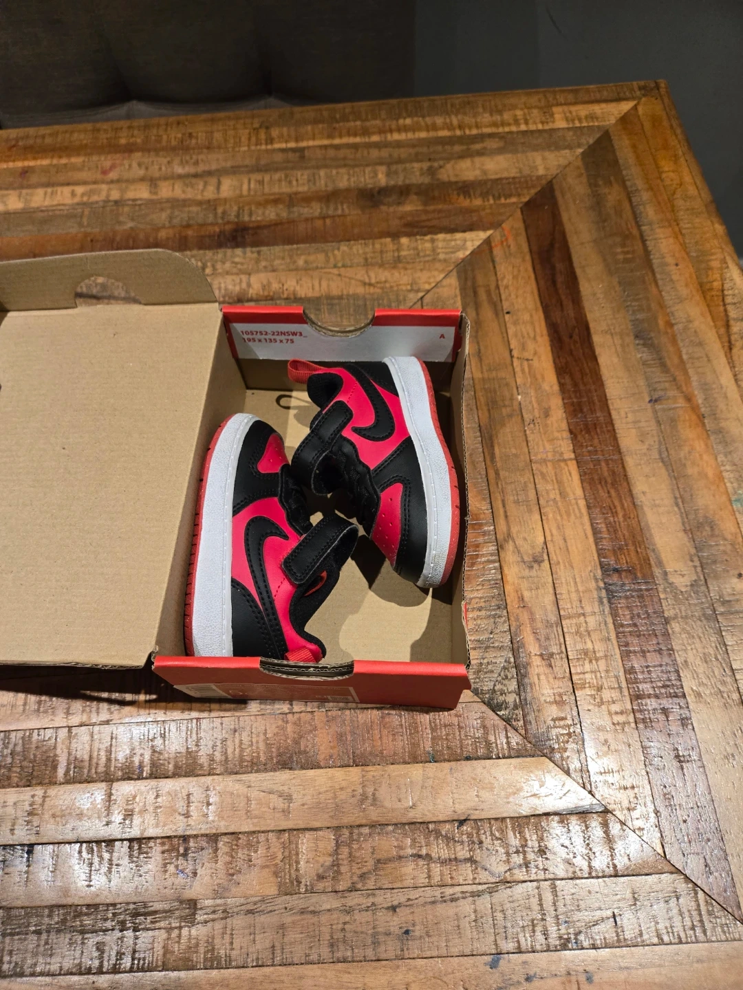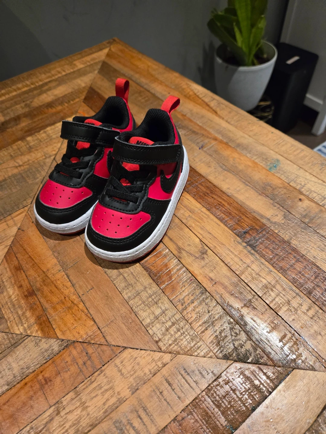 These cool Nike Air Force 1 toddler shoes are in great condition and ready for a new home! They feature a classic red and black colourway and are a size 5c Perfect for your little one to step out in style!