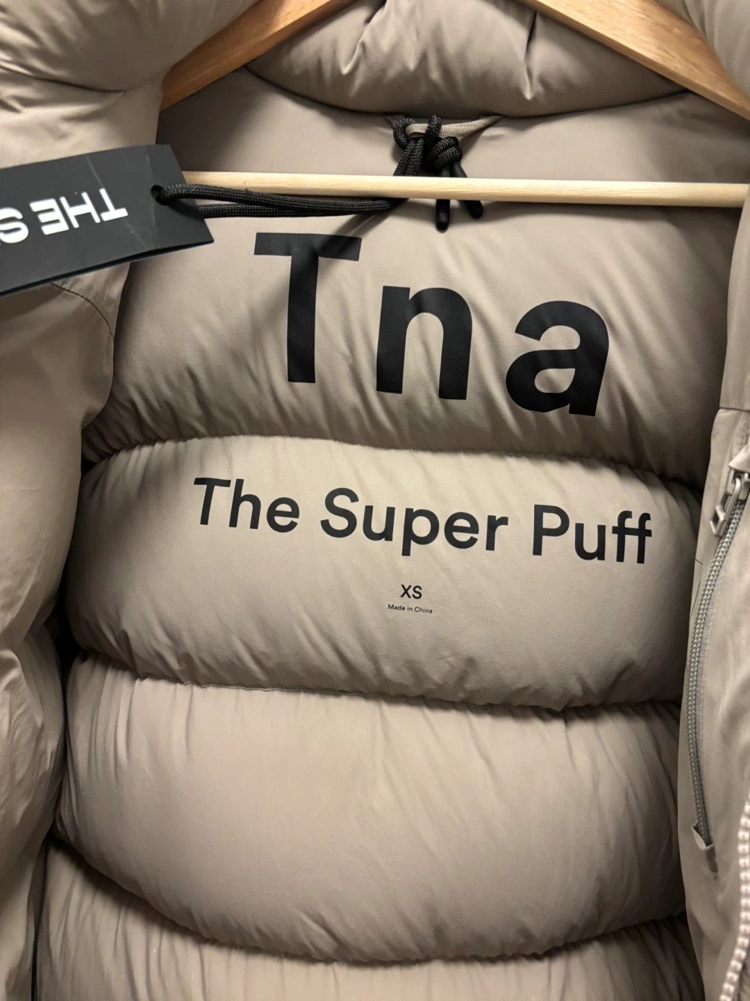 The Super Puff Down jacket Mid length by Aritzia TNA in amazing used condition. Still has tag attached. It has one slight stain as per the picture but barely noticeable.