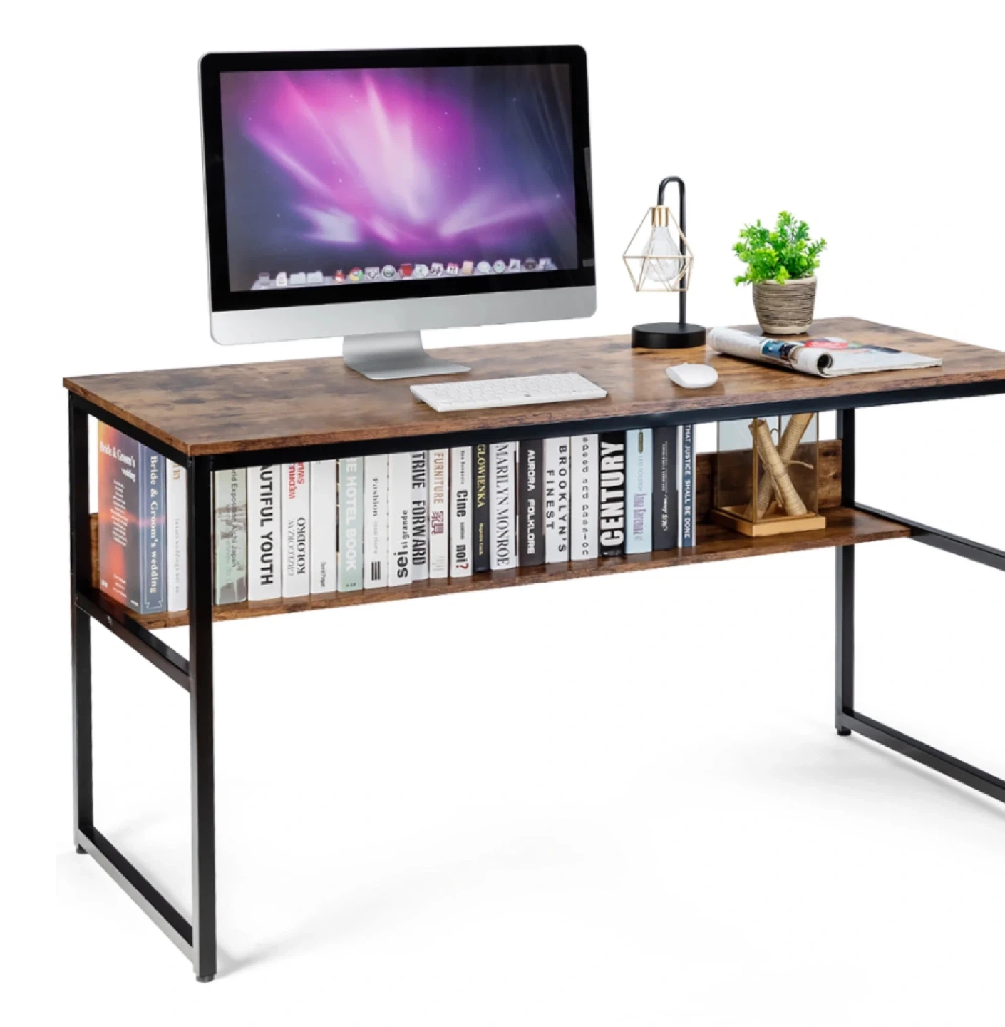 Costway 55'' Industrial Computer Desk w/ Storage Shelf