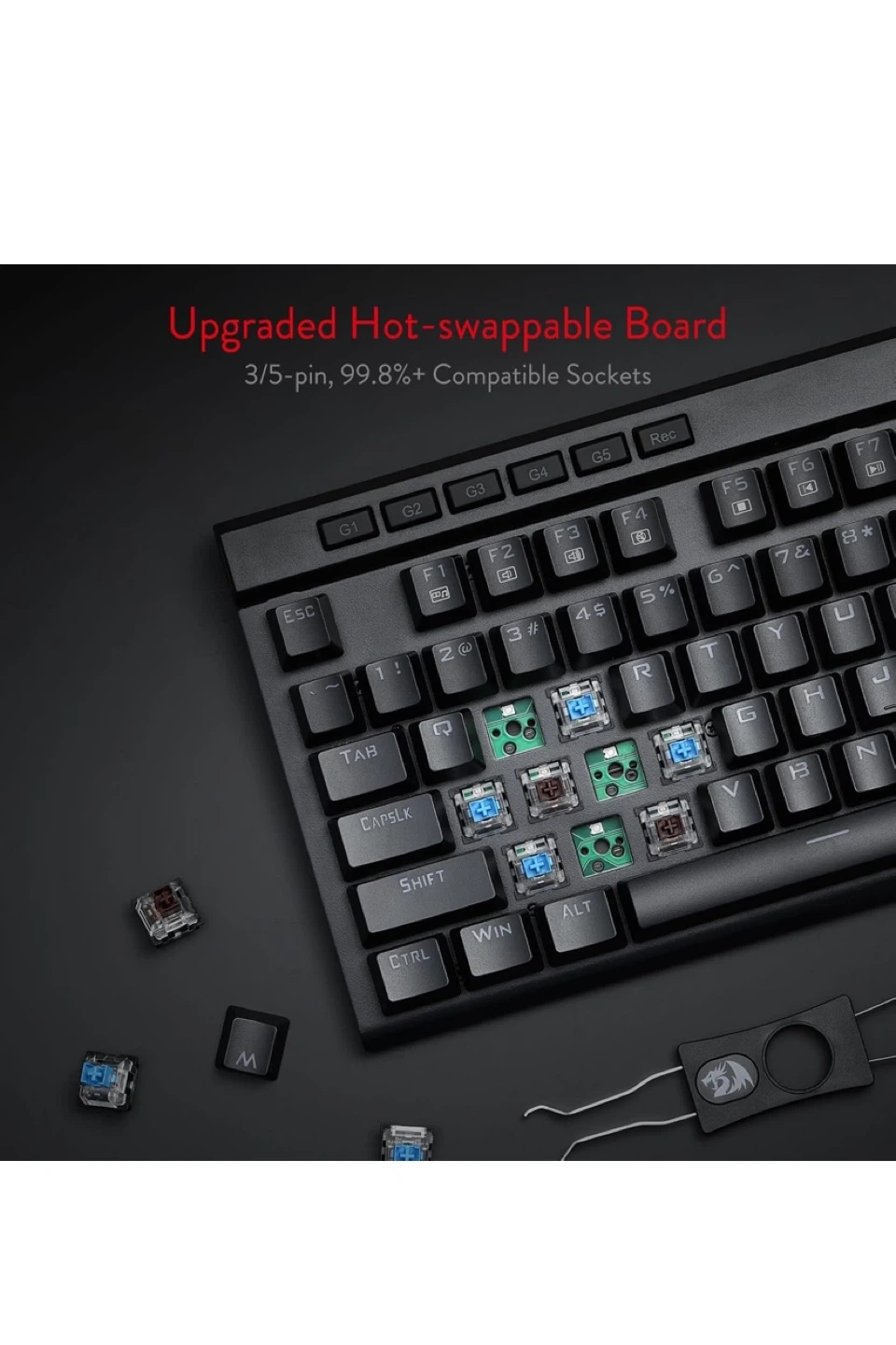 - Hot-swappable keyboard for more mechanical switch options