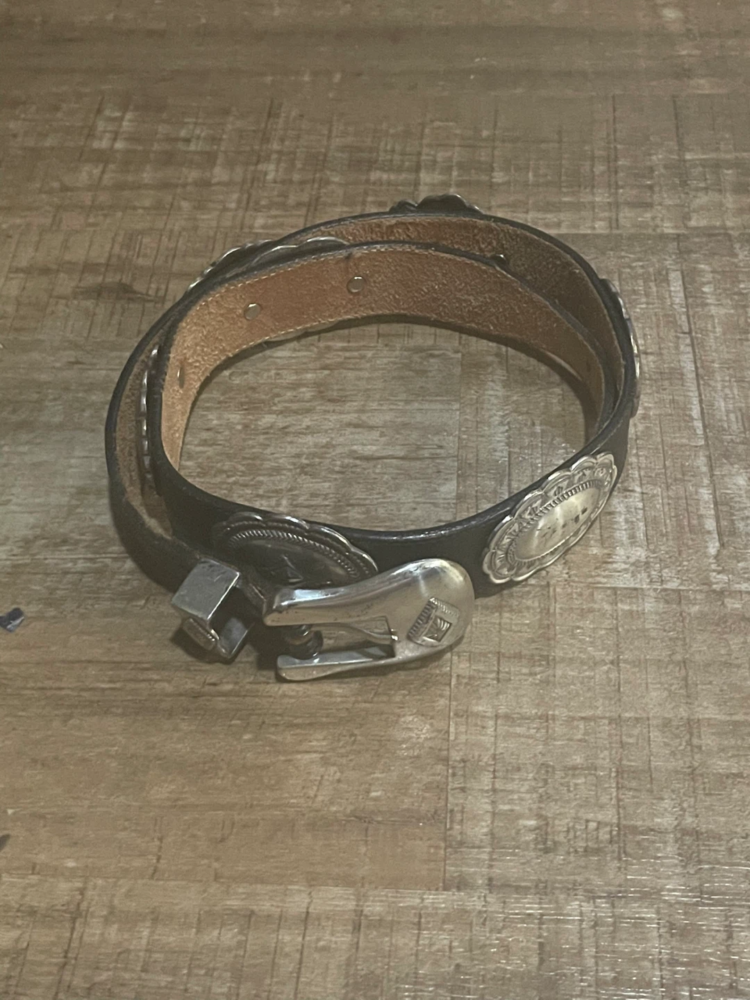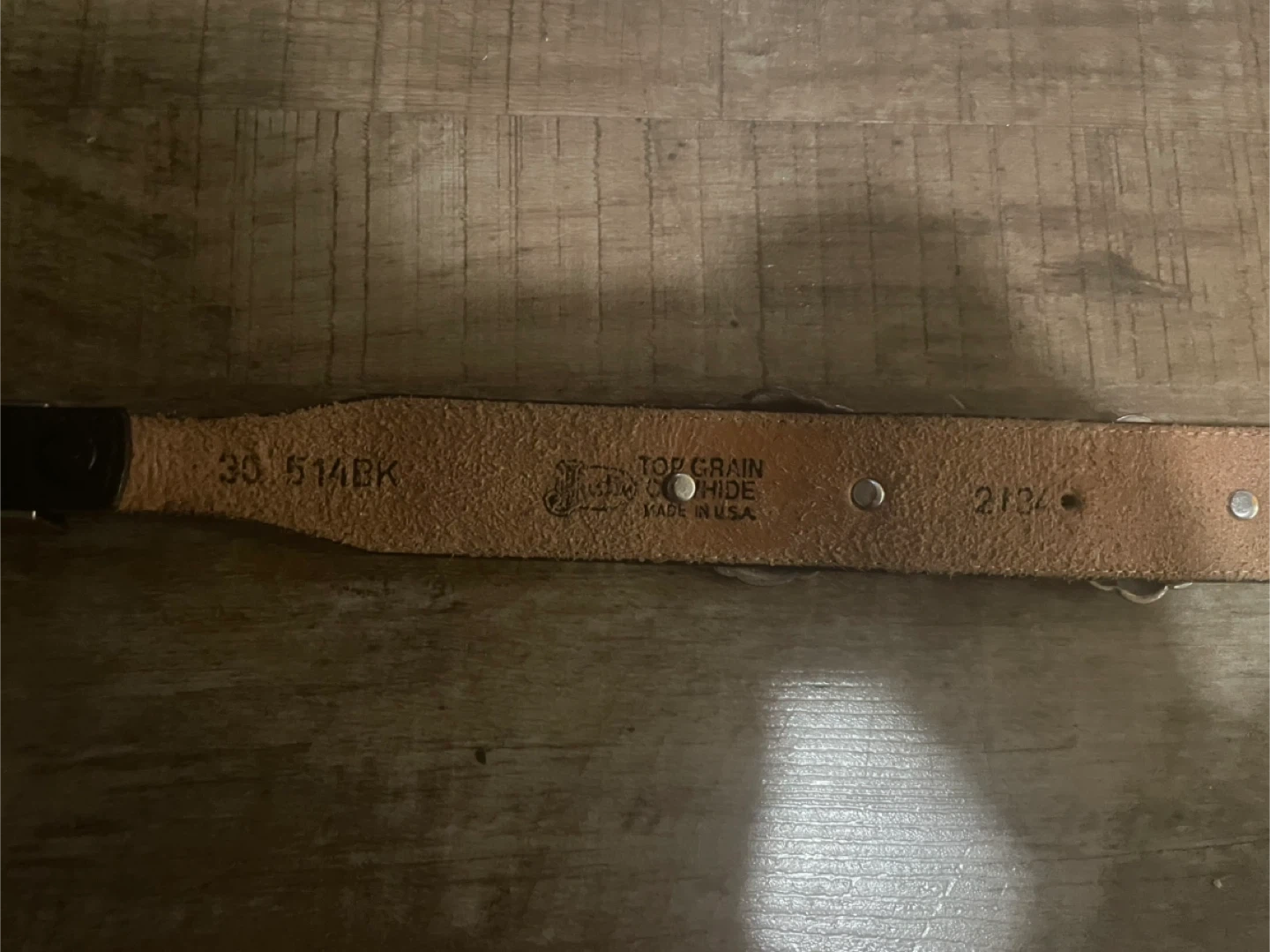 Vintage Justin Belt Top Grain Cowhide Leather silver buckle