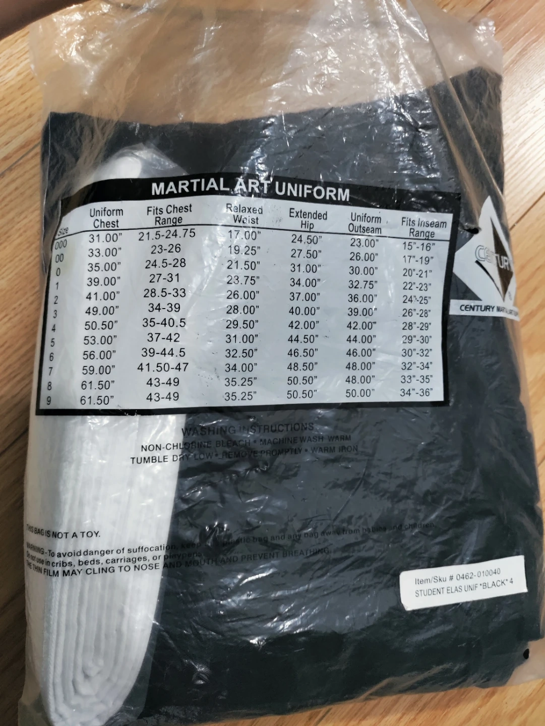 Century Martial Art Uniform, Black, Size 4