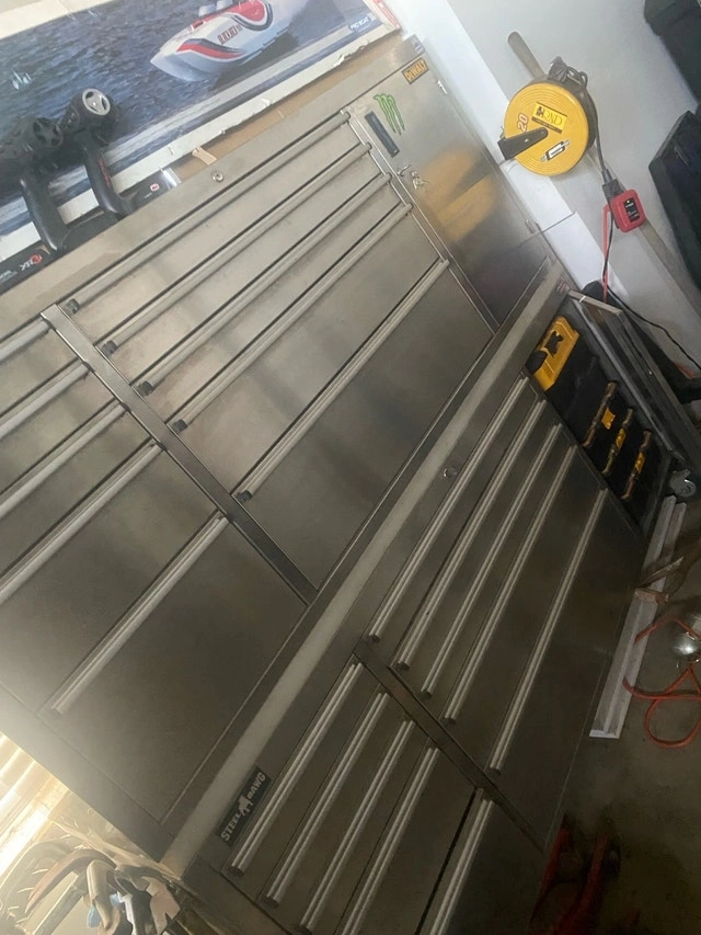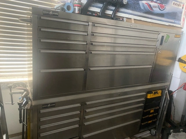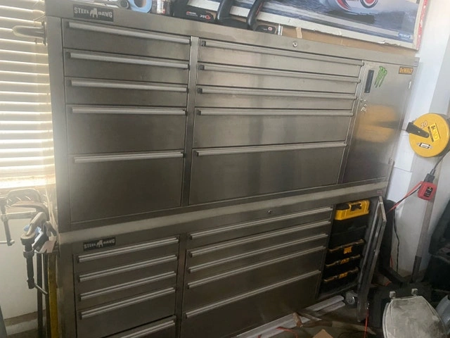 This is a used Steel Dawg tool box combination, providing ample storage for all your tools and equipment. It has a stainless steel finish and is in good, used condition. Some tools may be included if needed, or I can sell them separately. You can also purchase tools only. Let me know if you're interested!