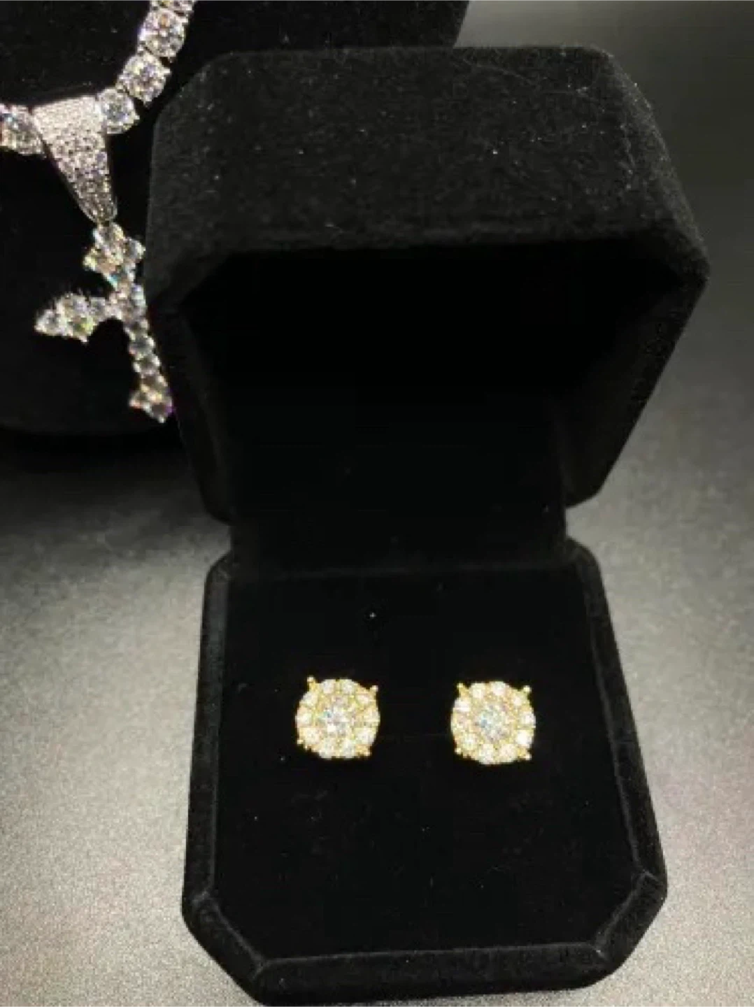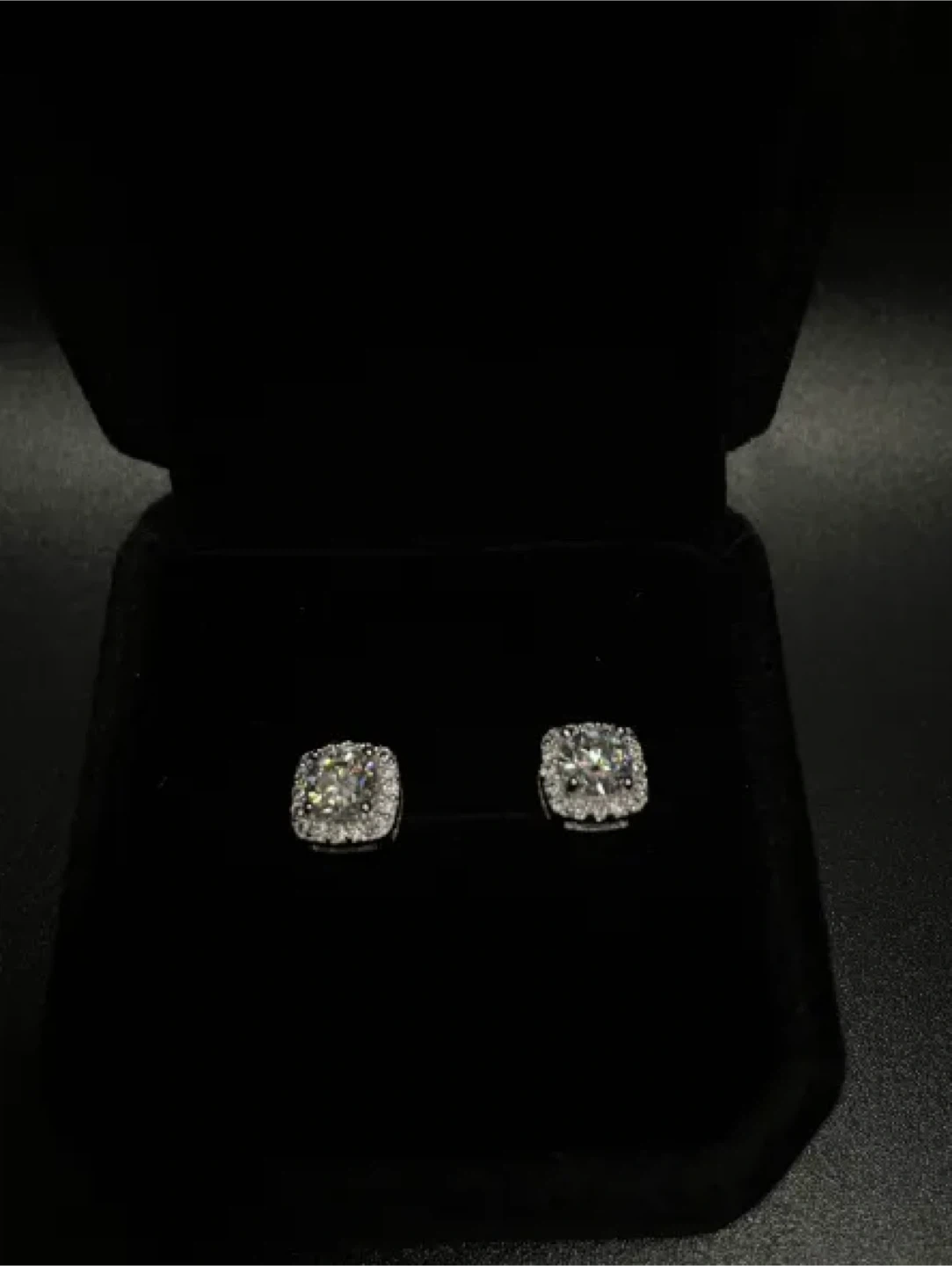 These cushion cut stud earrings are so sparkly! They come in a box, perfect for gifting or keeping them safe. They are in excellent condition and ready to add a touch of elegance to any outfit