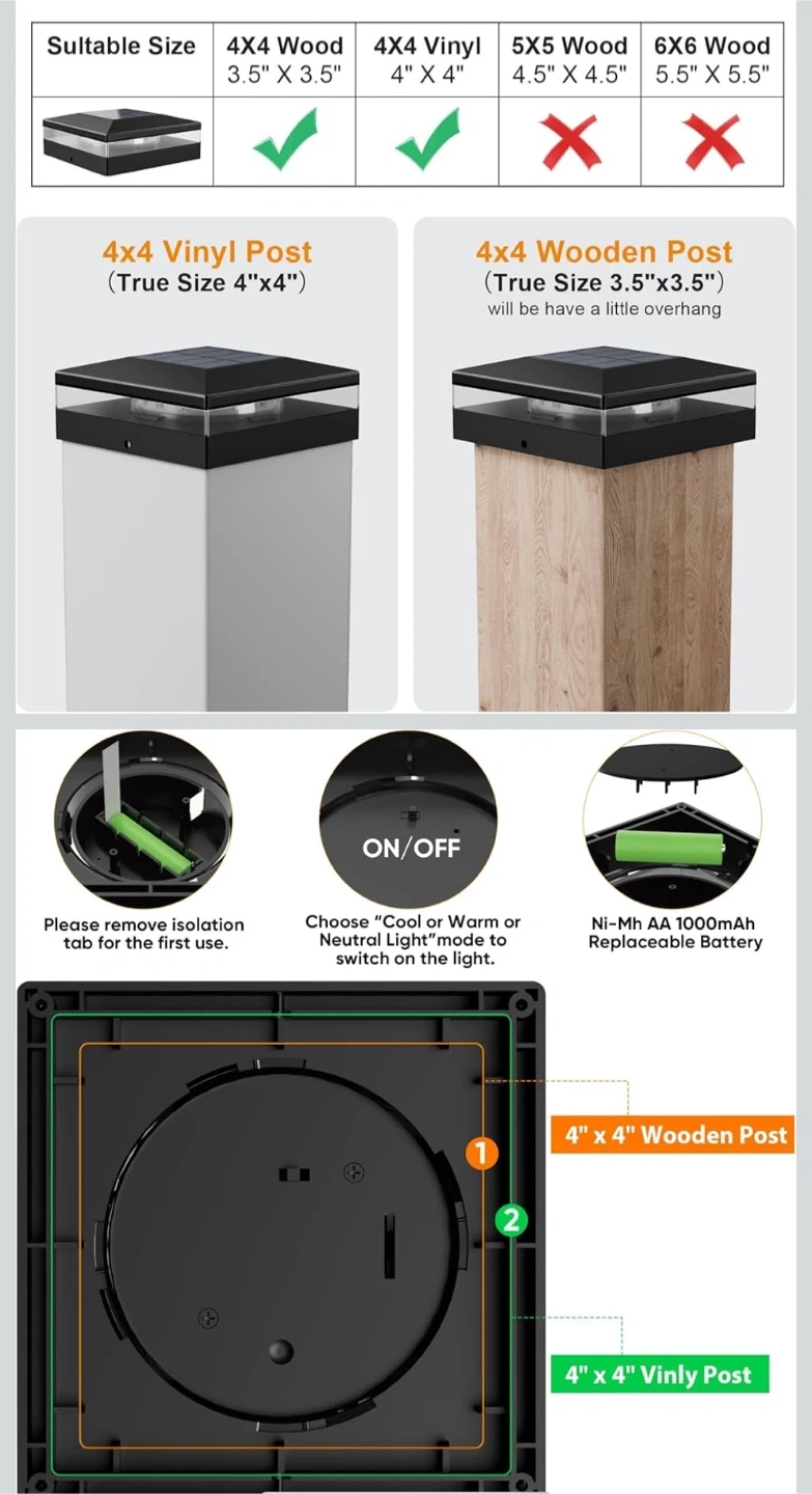 - Designed for 4x4 inch wooden or vinyl posts