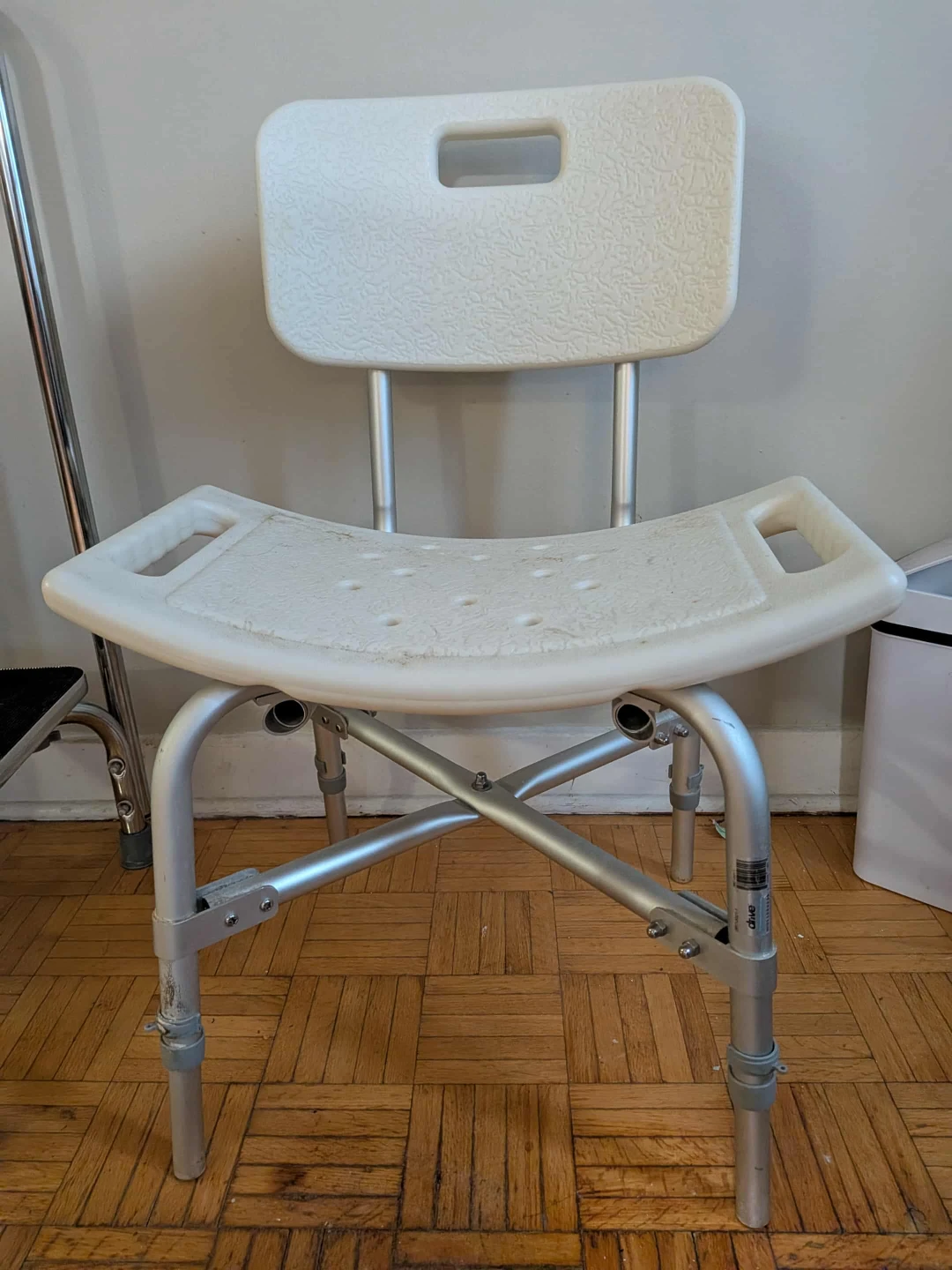 Selling a Drive Oversized Medical folding shower chair with back. It's in great condition and perfect for anyone needing a little extra support in the shower. The chair is lightweight and folds easily for storage. It features a comfortable seat and backrest, making showering a breeze!