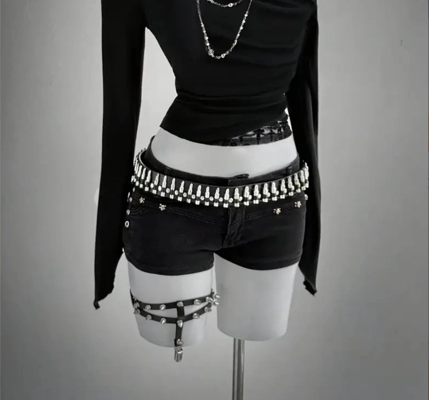 Selling a black bullet belt! The belt features a row of silver bullets, adding a bit of edge to any outfit. In great condition and ready for a new home