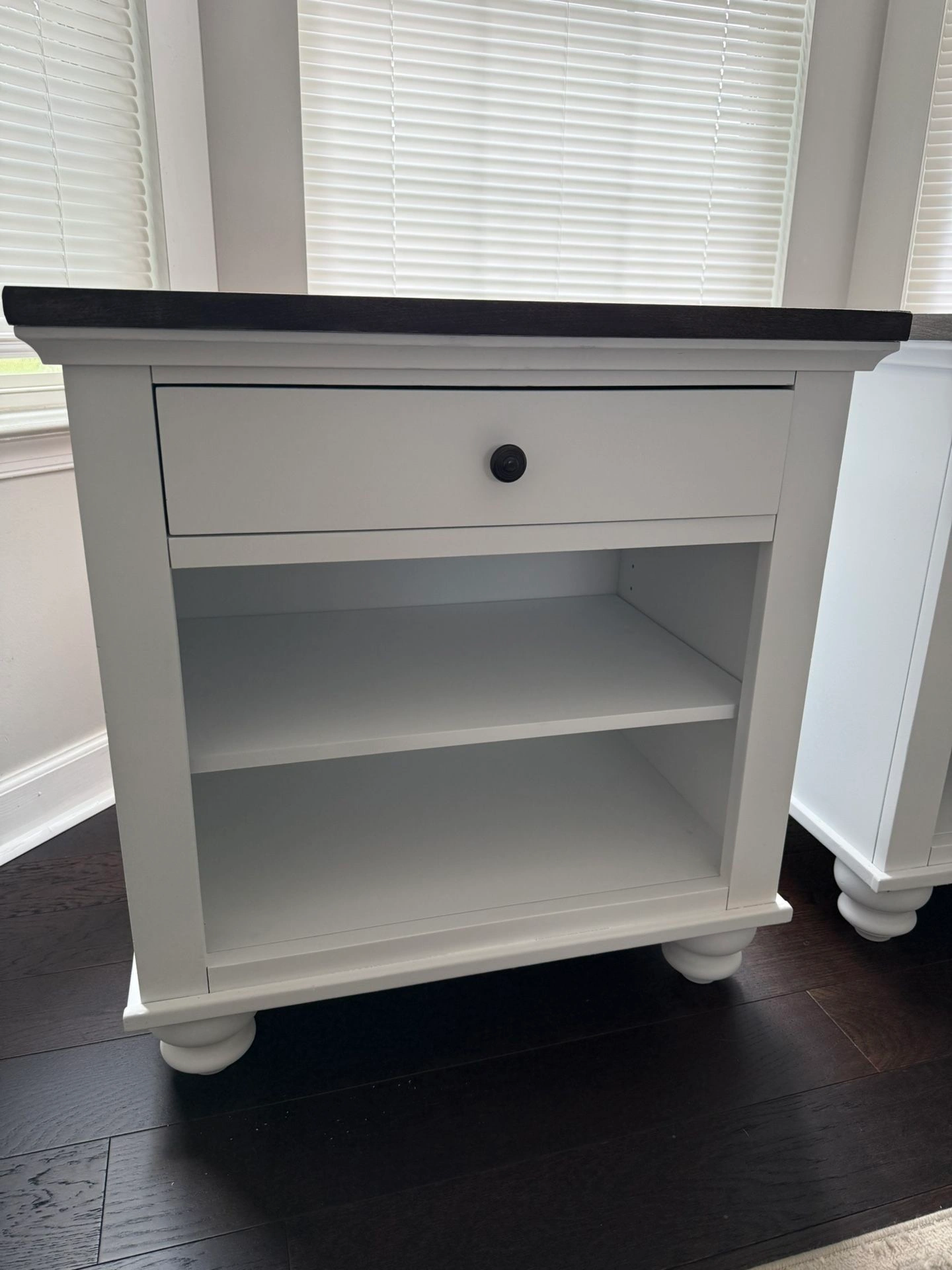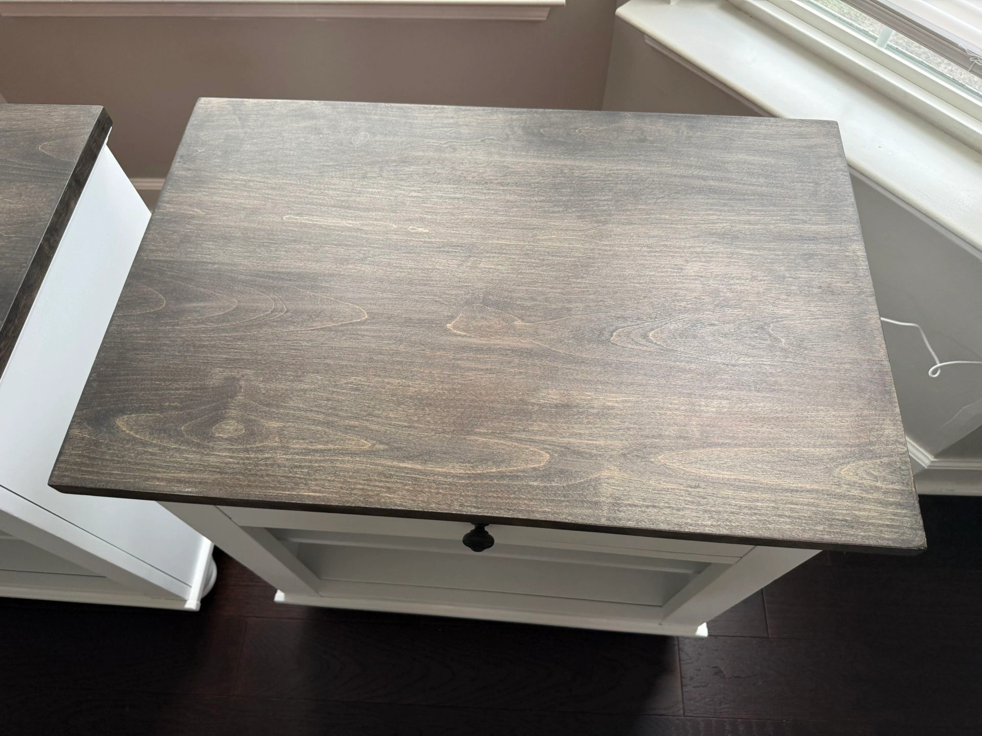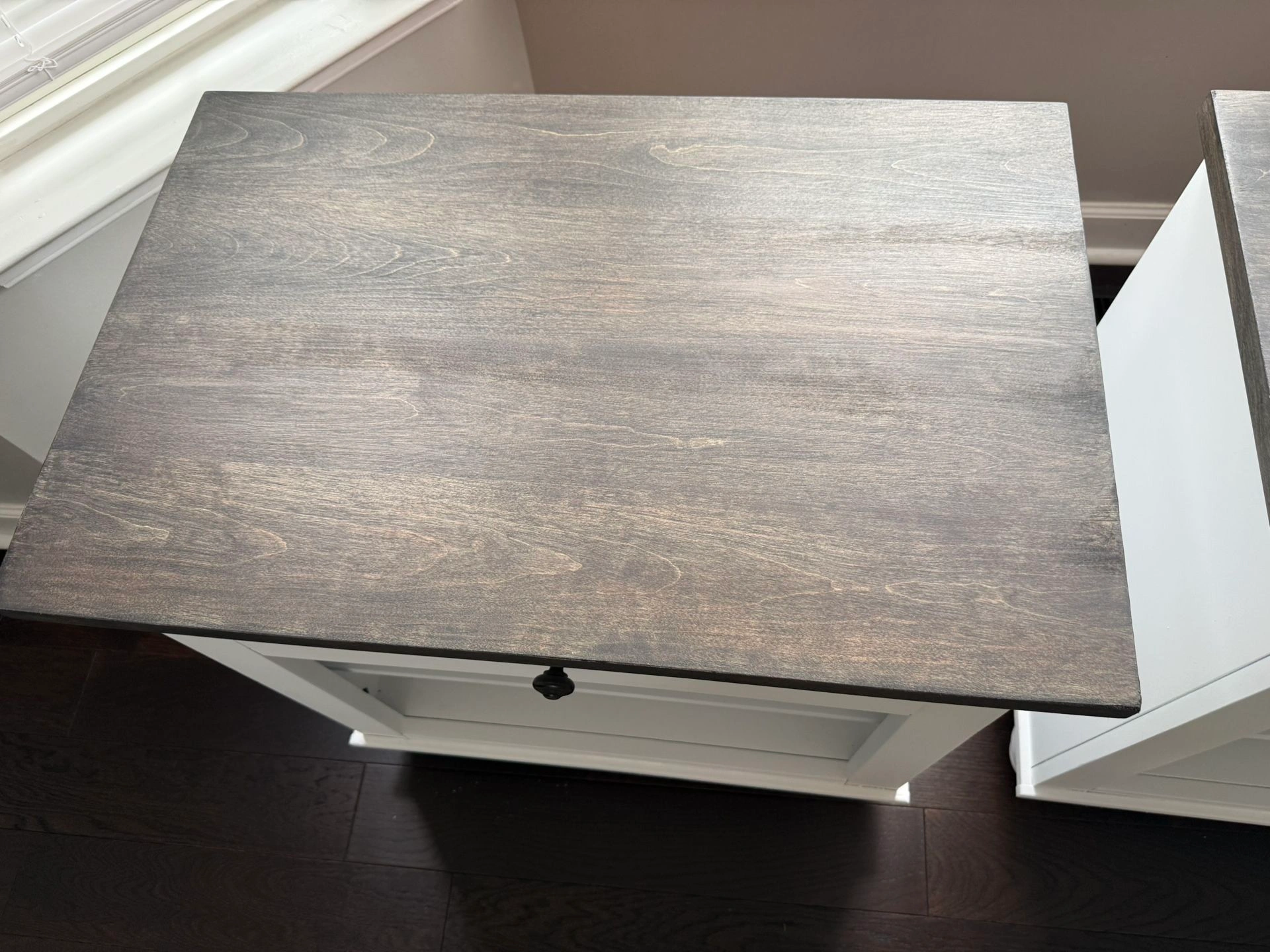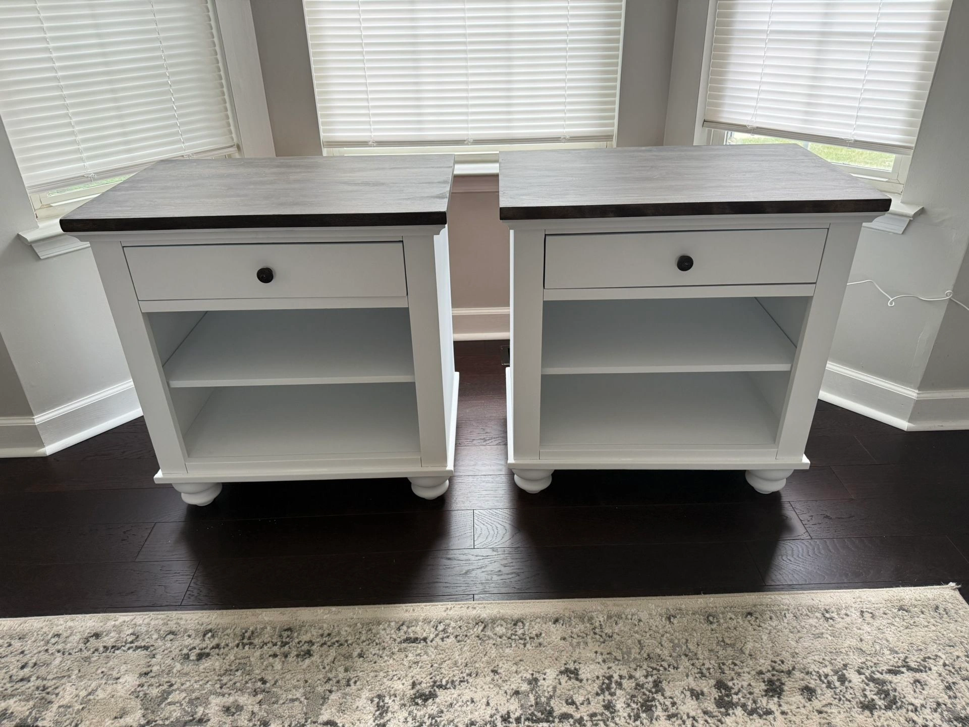 Refinished nightstands/end tables in a clean, modern color combination. Freshly painted & stained, ready to elevate any room.