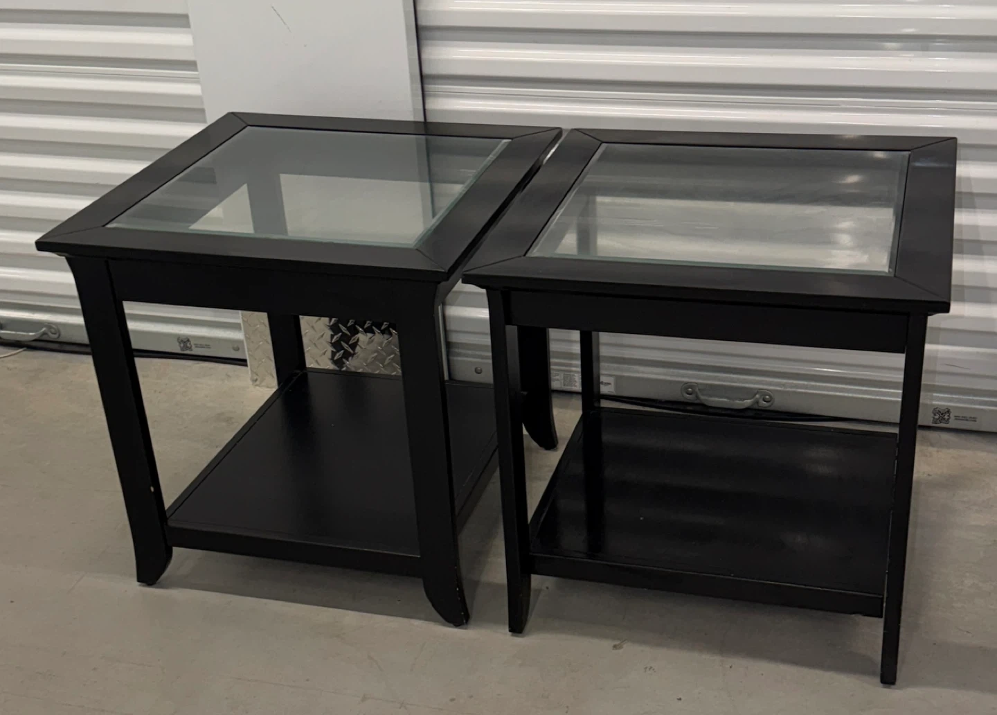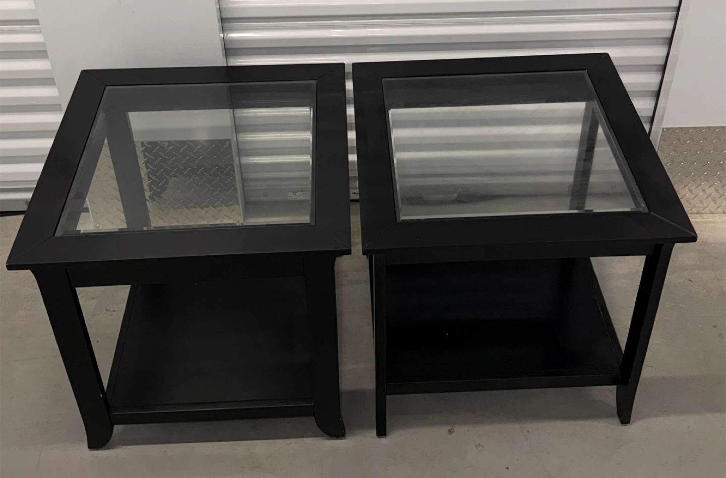 Black Glass-Top End Tables (Set of 2)