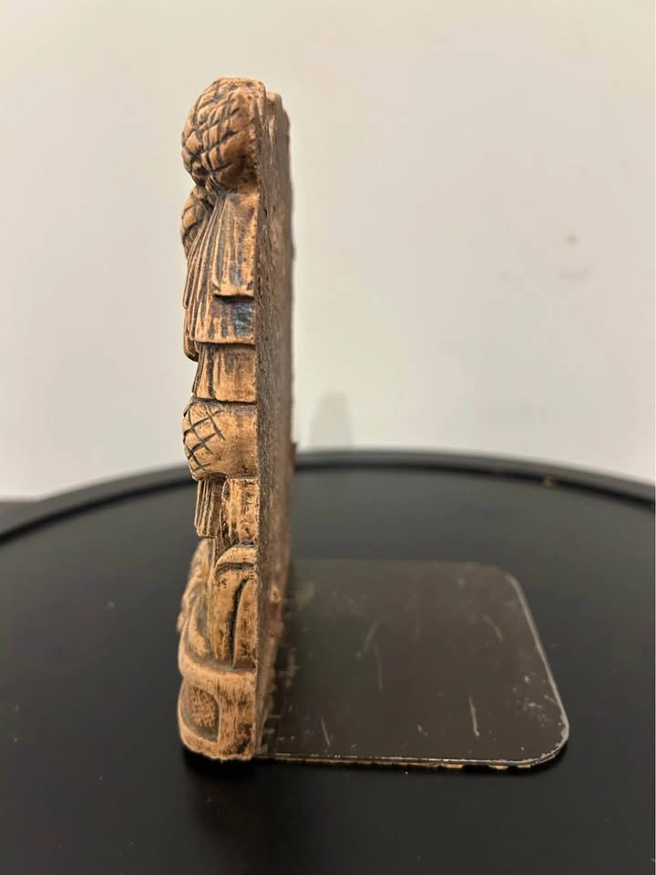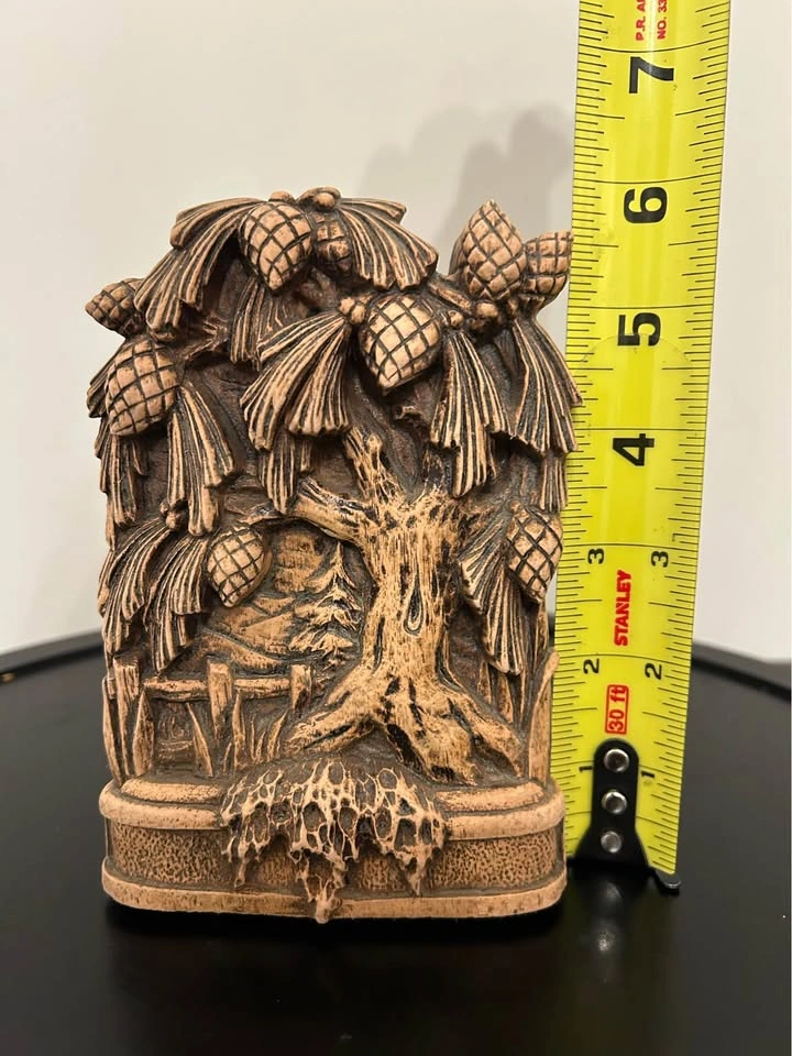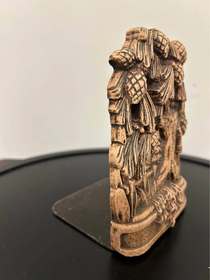 Beautiful vintage bookend featuring an intricate pinecone and forest motif. Made of heavy composite resin with a hand-carved look, it brings a warm rustic cabin aesthetic to any bookshelf or home décor. The piece shows detailed pinecones, tree roots, and woodland scenery — great for lodge, cottage, or nature-themed interiors.