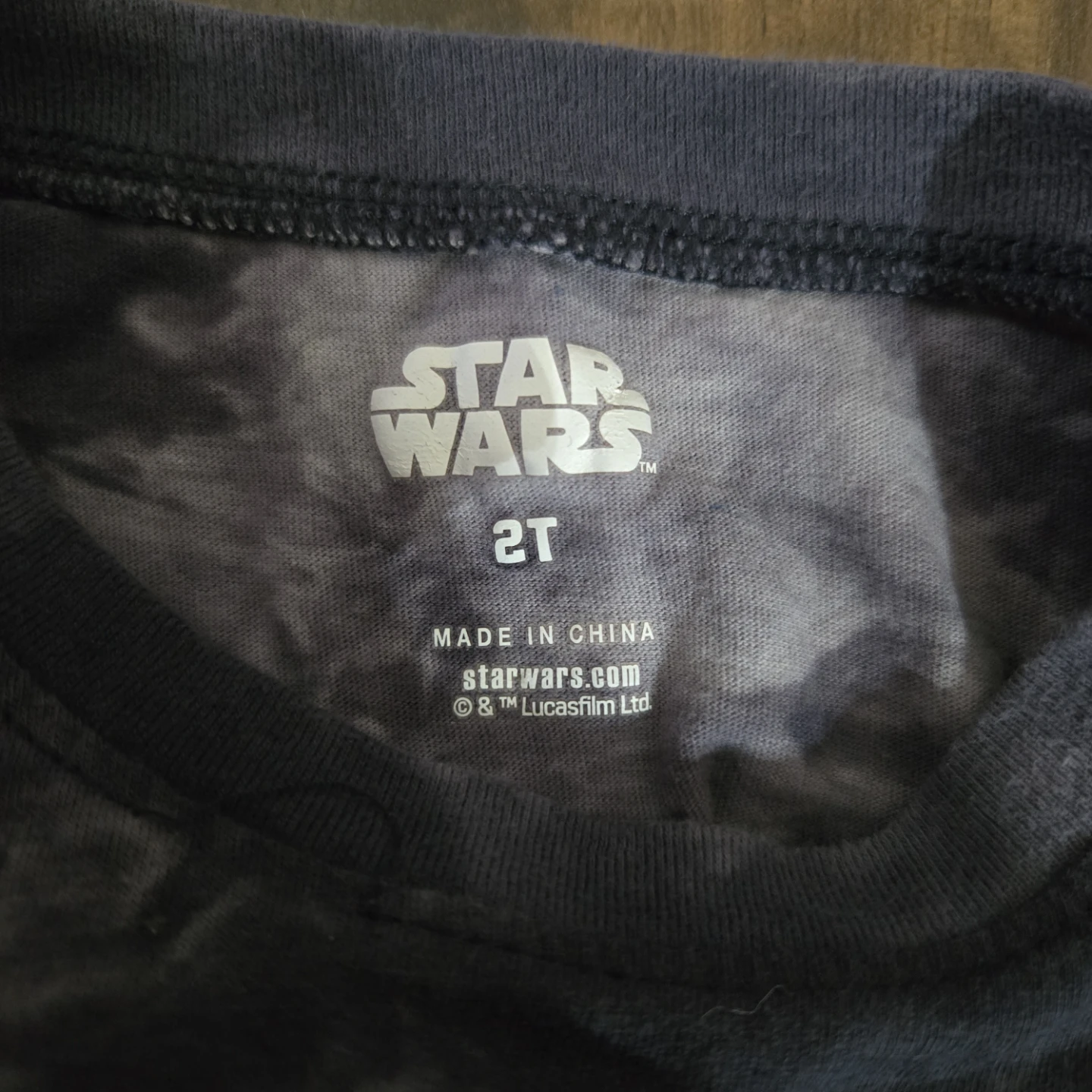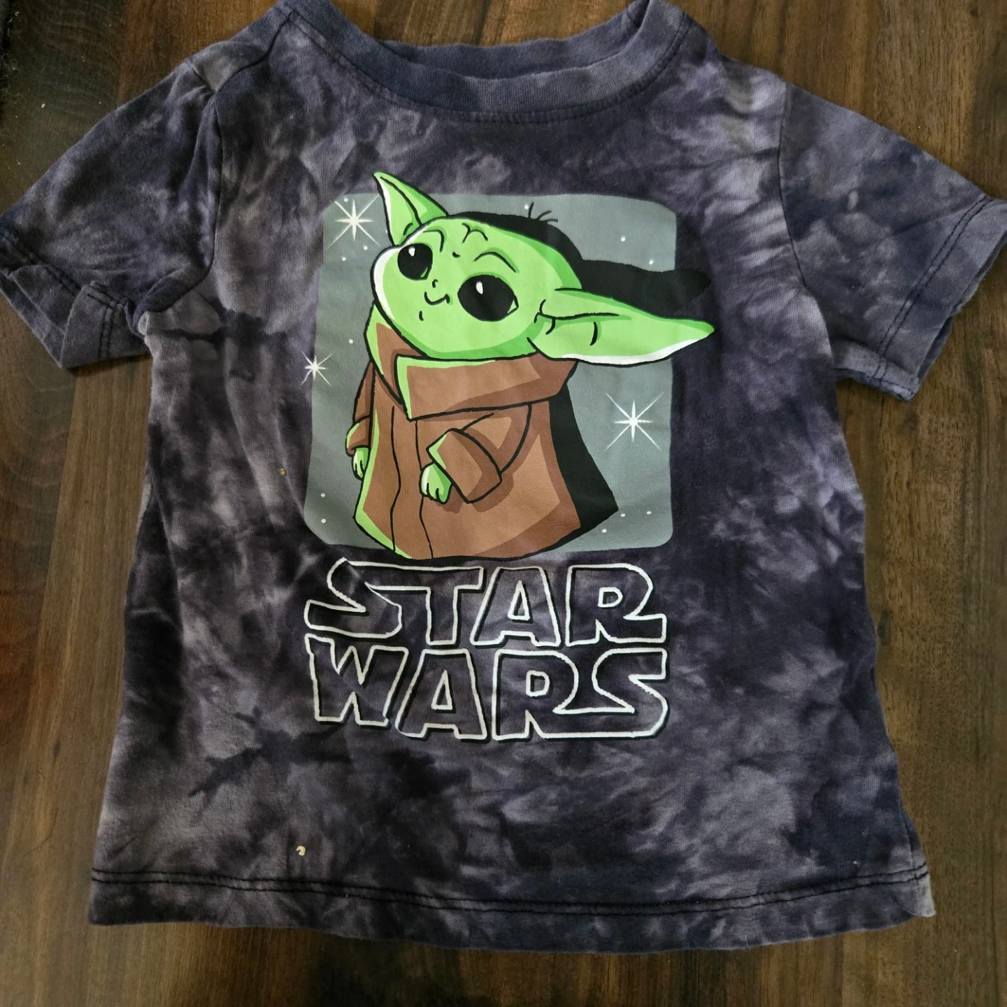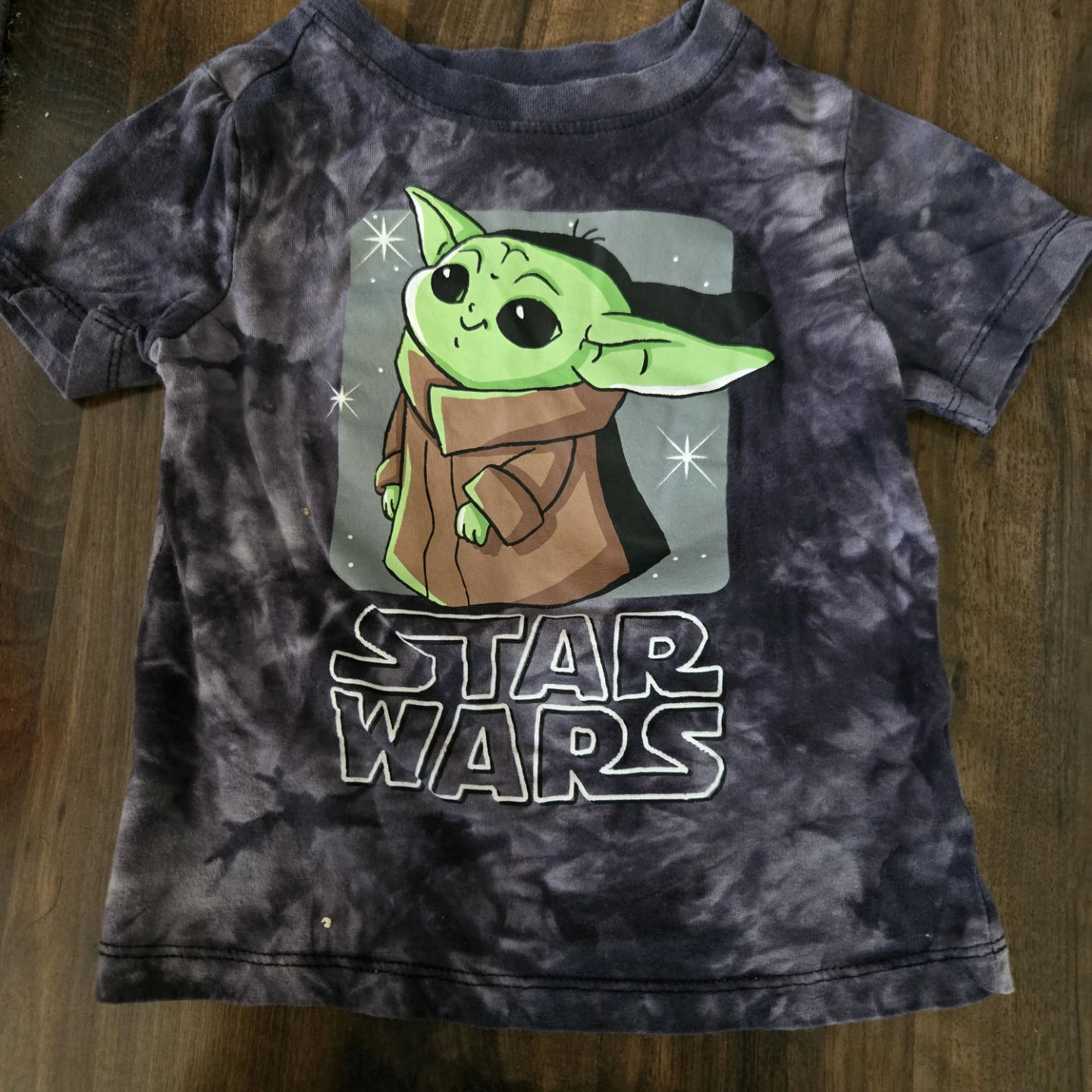 Selling a cute Star Wars Baby Yoda t-shirt in size 2T! The shirt features a cool tie-dye design with Baby Yoda and the Star Wars logo on the front. Great for any little Star Wars fan